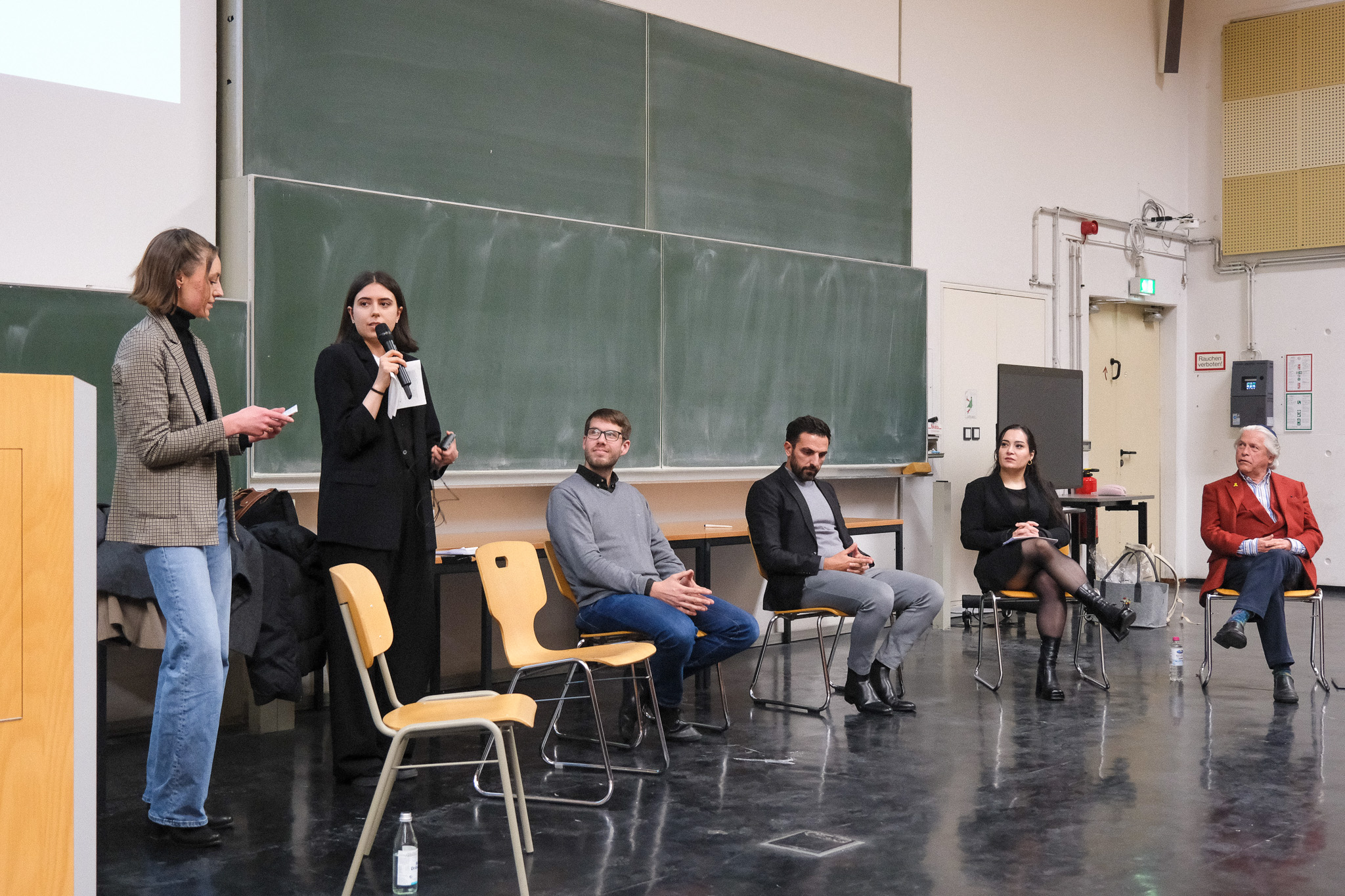 Krieg, Gewalt und das Friedenspotenzial von Religionen – zu diesen Themen tauschten sich jetzt Vertreterinnen und Vertreter aus Theologie, Praxis und der interdisziplinären Konflikt- und Gewaltforschung innerhalb einer interreligiösen Podiumsdiskussion an der Universität Bielefeld aus. Mit dabei waren Dr. Lukas Wiesenhütter (katholischer Theologe an der Universität Bonn), Prof. Çefli Ademi (Islamischer Theologe an der Universität Münster), Zeynep Demir (Psychologin, interdisziplinäre Konflikt- und Gewaltforschung an der Uni Bielefeld) und Paul Yuval Adam (Kantor in der jüd. Kultusgemeinde in Bielefeld). Organisiert wurde die Veranstaltung vom „Café Abraham Bielefeld“ – ein interreligiöses Dialogformat der religiösen Hochschulgruppen in Bielefeld. Dazu gehören die Evangelische Studierendengemeinde (ESG), die Deutschsprachige Muslimische Studierendenvereinigung (DMS) und die Katholische Hochschulgemeinde (KHG) in Bielefeld.