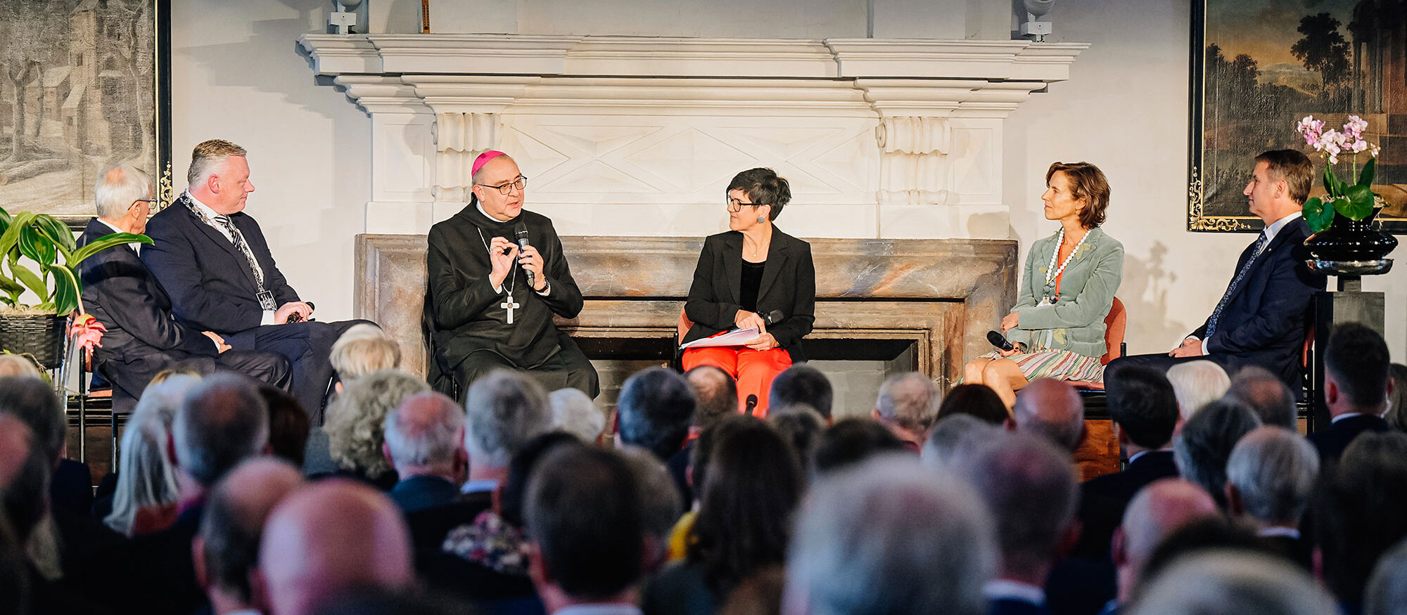 „Unsere Rolle als UNESCO-Welterbe ist uns Ehre und Auftrag zugleich“, versicherte Viktor Herzog von Ratibor und Fürst von Corvey in seiner Begrüßung im Kaisersaal. Das Jubiläum sei vor allem ein „Jubiläum der Kirche in Europa“, sagte er angesichts der Bedeutung des Klosters für die Christianisierung. „Das Licht der Gründung Corveys sollte sehr bald leuchten, als Ort, wo der Himmel die Erde berührt“, erinnerte Pfarrdechant Dr. Krismanek an das Leitwort des Jubiläums. Corvey sei auch heute ein wichtiger Anziehungspunkt – als Ort des Gottesdienstes und vieler kultureller Veranstaltungen.