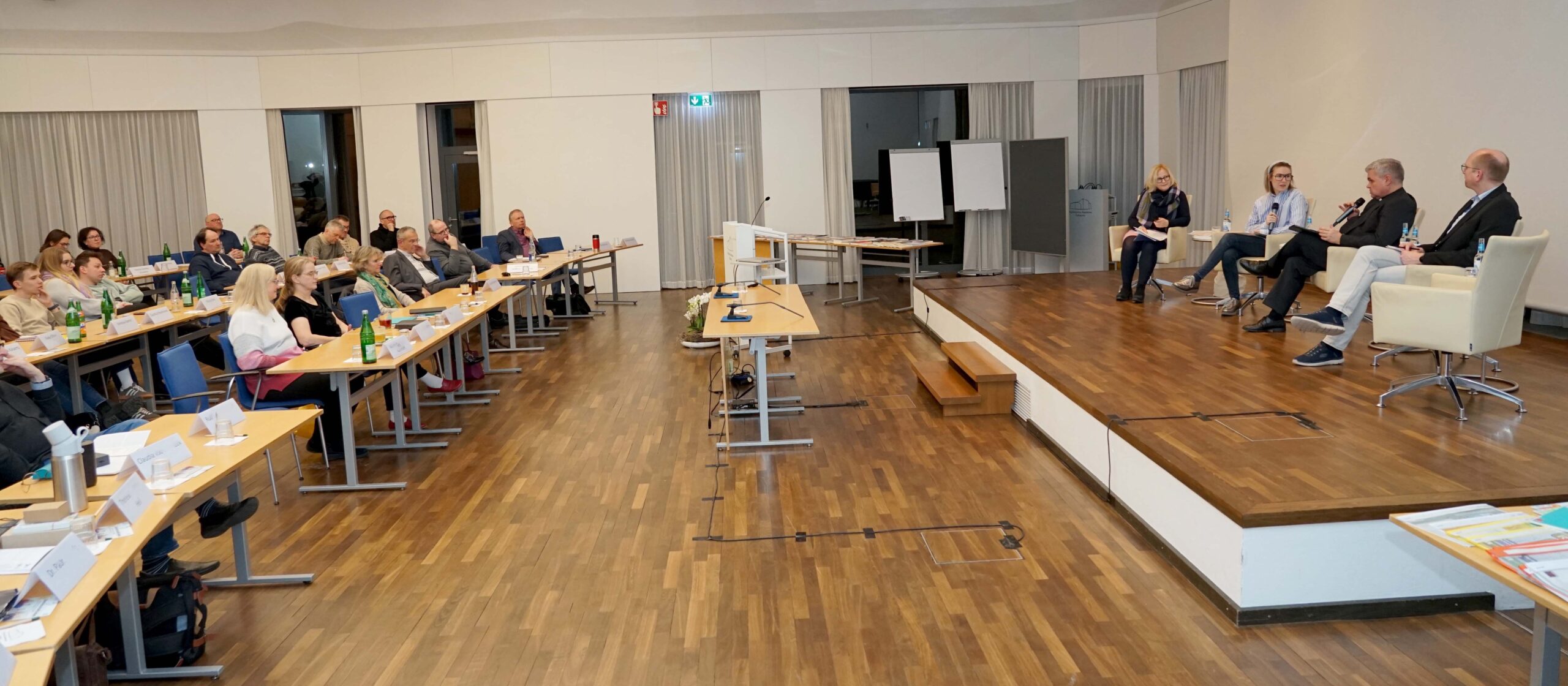 „Ich danke ihnen sehr, dass Sie an einer Stelle Kirche sind, wo Kirche sonst kaum noch vorkommt“, richtete am Mittwochabend (19.02.2025) Erzbischof Dr. Udo Markus Bentz seinen Dank an zahlreiche Religionslehrerinnen und Religionslehrer in der Katholischen Akademie Schwerte. Dort fand am Mittwoch und Donnerstag die Jahrestagung der Vereinigung katholischer Religionslehrerinnen und -lehrer an Gymnasien und Gesamtschulen im Erzbistum Paderborn (VKRG) statt. Nach einem gemeinsamen Gottesdienst in der Kapelle hatten die Teilnehmenden die Möglichkeit, mit dem Erzbischof über das Tagungsthema „Multiple Krisen und die Frage nach Gott und dem Menschen“ sowie über die Bedeutung des Religionsunterrichts ins Gespräch zu kommen.