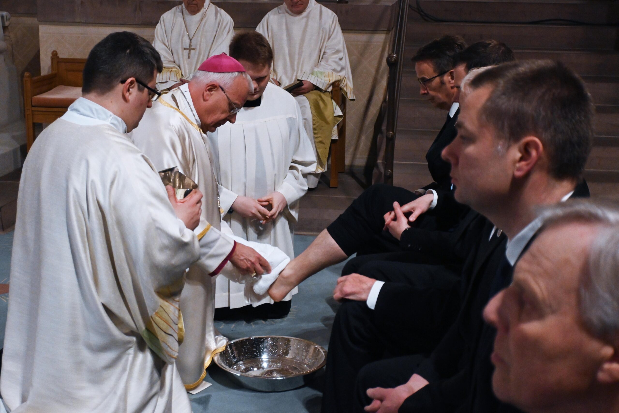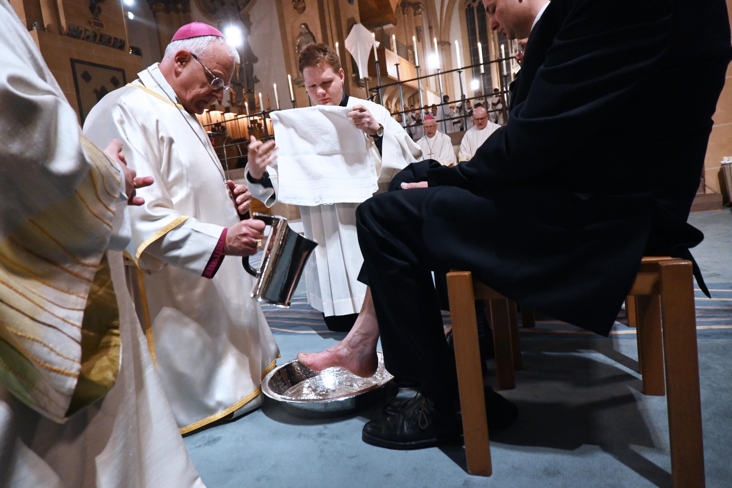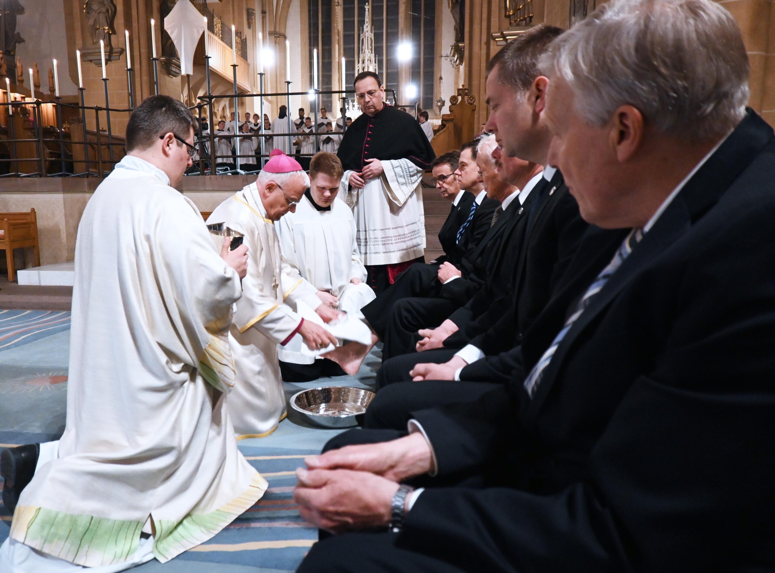 „Heute Abend, in dieser dichten Feier, mit der die Heiligen drei Tage vom Leiden, Sterben und der Auferstehung des Herrn beginnen, möchte uns die Fußwaschung des Evangeliums drastisch deutlich machen, wie weit Gottes Sohn in seiner Liebe zu uns Menschen bereit ist zu gehen: Er macht sich sehr bewusst den Niedrigsten gleich! Was er vorher in seiner Verkündigung immer wieder den Menschen vermitteln wollte, was hier ein greifbares Zeichen seiner Hingabe wird, vollendet sich im Abendmahl und am Kreuz“, sagte Weihbischof Matthias König.