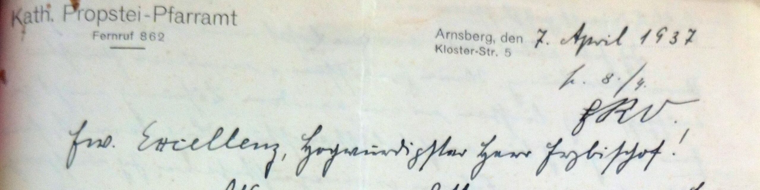 „Mein Gewissen und meine Priesterauffassung ließen eine andere Lösung nicht zu für mich.“ Diesen Satz schreibt der Arnsberger Propst Josef Bömer am 7. April 1937 an seinen Erzbischof in Paderborn. Er erklärt, was er soeben getan hat: Gemeinsam mit dem Küster hat er „still … (aber wohl in liturgischen Gewändern)“ das Allerheiligste aus der Arnsberger St. Georgskapelle geholt, das Ewige Licht gelöscht und die Kirche abgeschlossen. Hier kann kein Gottesdienst mehr gefeiert werden.