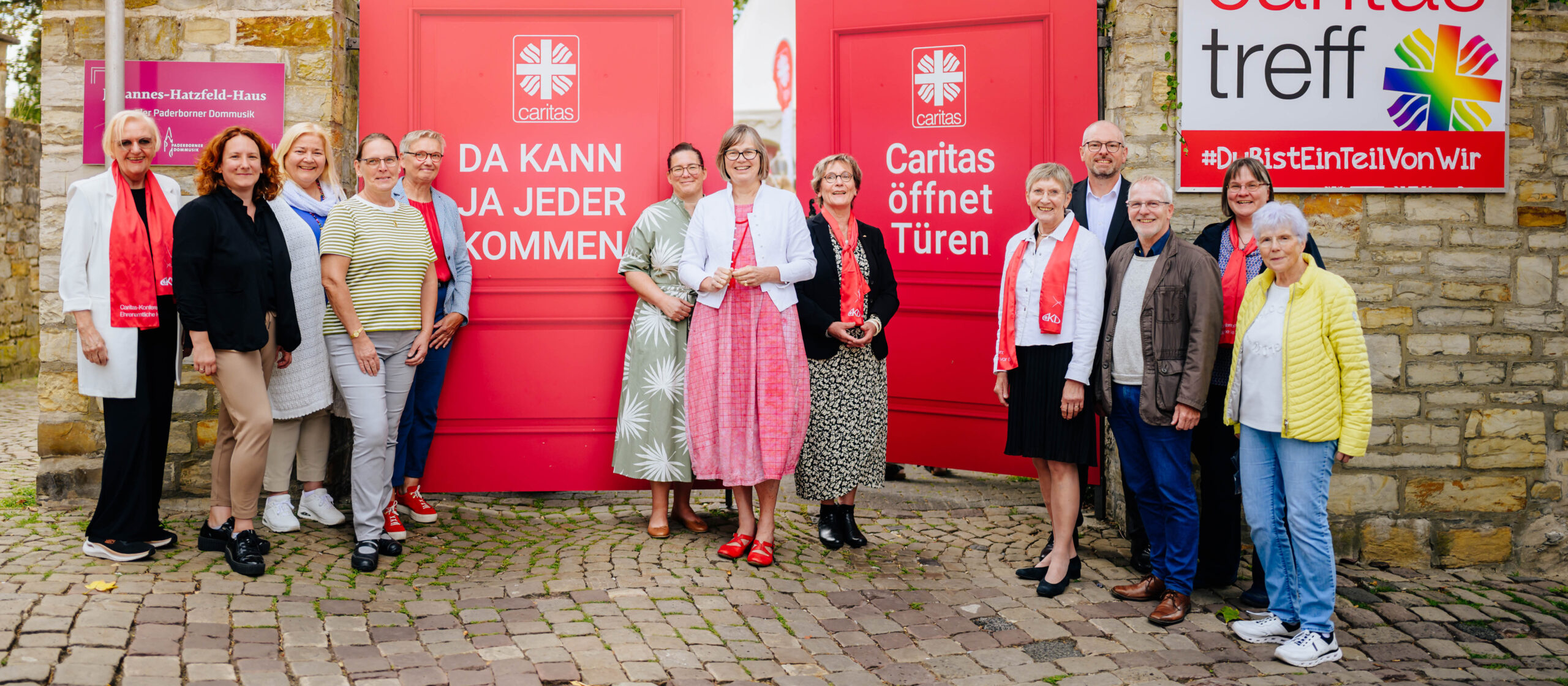 Eine wichtige Station des Besuchs von Caritas-Präsidentin Welskop-Deffaa war ein Projekt der Caritas-Konferenzen (CKD), die die mobile Plauderbank mitgebracht hatten, welche Menschen unkompliziert miteinander ins Gespräch bringt und den sozialen Zusammenhalt stärkt.