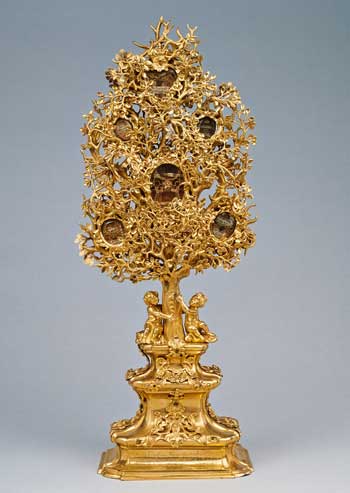 Im Laufe der Jahrhunderte wurde die für die Kirchen des Rietberger Landes geschaffene Kunst immer vielfältiger und reicher. Barocke Messgewänder, malerische Bildwerke, liturgische Gefäße und feingearbeitete Skulpturen wurden für die Ausstellung zusammengetragen. Darunter befinden sich einzigartige Kostbarkeiten, filigrane Werke der Goldschmiedekunst, wie etwa das sogenannte Rietberger Baumreliquiar, eine Reliquienmonstranz, die wohl 1743 in Wien geschaffen worden ist. Dieses sonst im Erzbischöflichen Diözesanmuseum Paderborn ausgestellte Kleinod wurde von Gräfin Maria Ernestine Franziska von Kaunitz-Rietberg (1687-1758) für die Pfarrei St. Johannes Baptist Rietberg gestiftet.