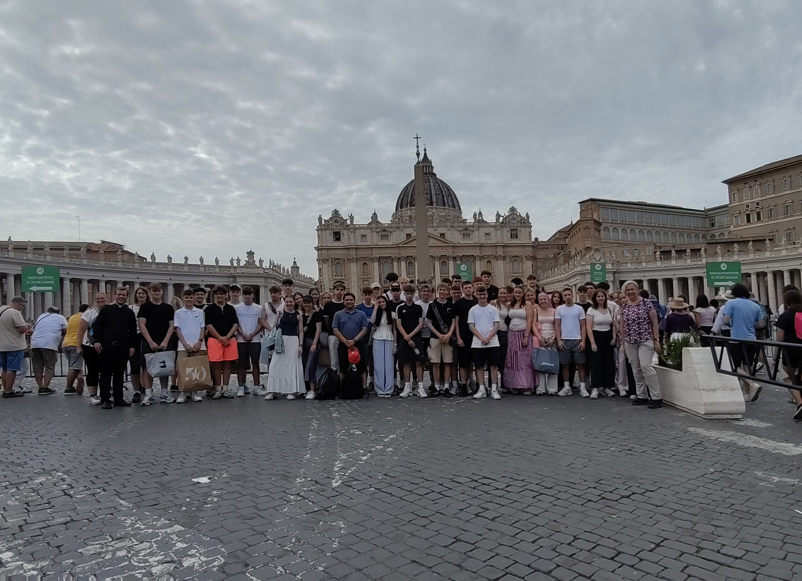 Am Samstag, 6. September 2025, begann die Reise mit einer gemeinsamen Messe in der Hauskapelle der St.-Franziskus-Schule. Anschließend machten sich 47 Schülerinnen und Schüler mit ihren Lehrerinnen sowie Pastor Albert auf den Weg in Richtung Rom. Während der langen Busfahrt sorgten Gespräche, Gesellschaftsspiele und gemeinsames Singen für gute Stimmung.
