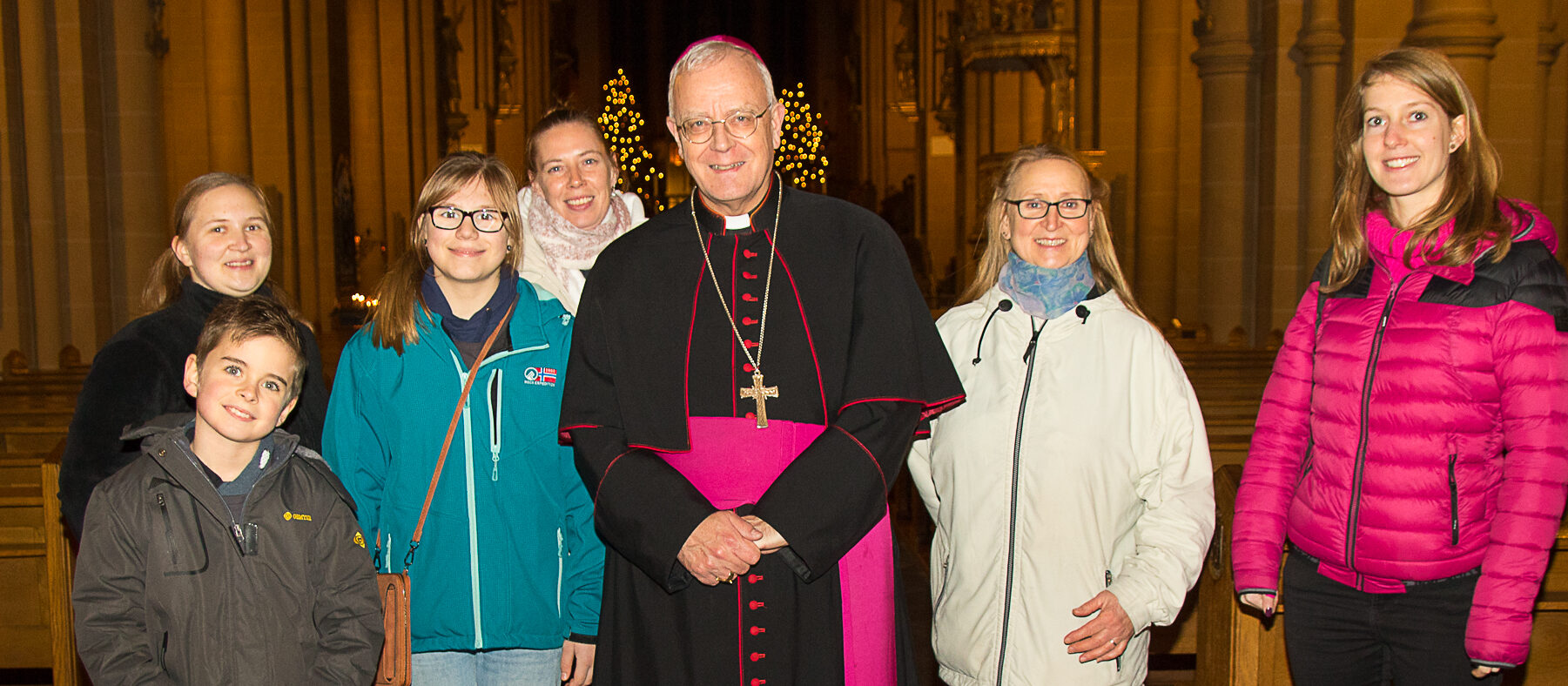 Weihbischof König zeigte der Gruppe Paderborn und den Dom. Zu Füßen des Doms liegt das Paderquellgebiet, dem man heute noch die Schäden ansieht, die ein heftiger Tornado im vergangenen Jahr angerichtet hat. Die Kinder und die sie begleitenden Erwachsenen erfuhren, wie die Glocken in den Domturm kamen, ließen an der Domorgel das Glockenspiel erklingen und durften eine Mitra (Bischofshut) probetragen.