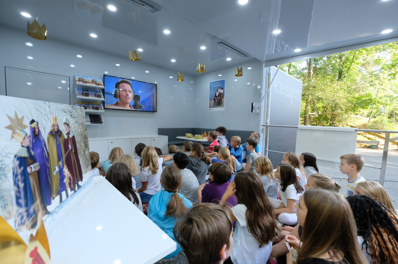 Bis Anfang September fährt das Sternsingermobil bei seiner aktuellen Tour durch Deutschland und besucht Pfarreien und Schulen. Erstmals im Einsatz war der aufklappbare Transporter des Kindermissionswerks im Jahr 2018 und hat seitdem mehr als 500 Einrichtungen besucht. Mehr als 33.500 Mädchen und Jungen hat das Mobil mit seinen Bildungsangeboten erreicht. Weitere Infos und die aktuellen Tourtermine gibt es unter www.sternsinger.de/sternsingermobil.