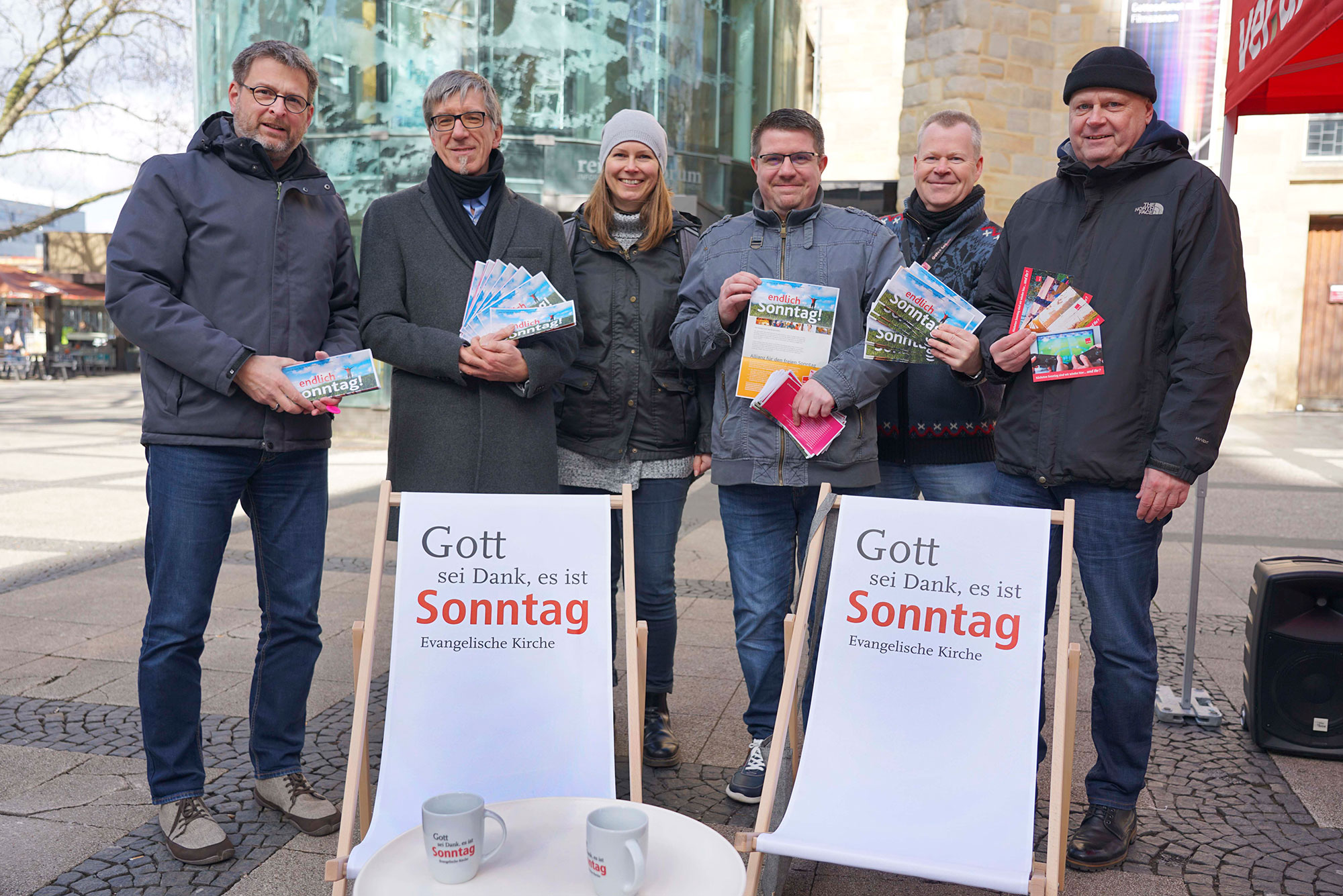 Verteilt wurden Flugblätter der „Allianz für den freien Sonntag“. Darin heißt es: „Der arbeitsfreie Sonntag ist das Symbol dafür, dass Leben mehr ist als Arbeit, dass Gesellschaft mehr bedeutet als Wirtschaft.“ Gründungsorganisationen der Allianz sind die Katholische Arbeitnehmer-Bewegung Deutschlands (KAB), die Vereinte Dienstleistungsgewerkschaft Verdi, der Bundesverband der Evangelischen Arbeitnehmerorganisationen und die Katholische Betriebsseelsorge.
