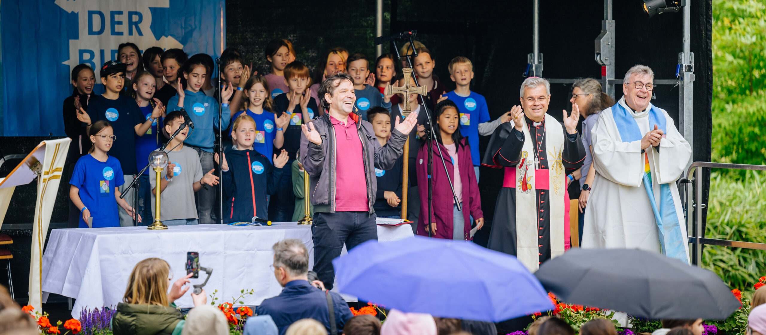 Mit Gottes Segen durchs Gehege: Das Capybara, das Wasserschwein, stand unter anderem im Mittelpunkt eines besonderen Tages. Stellvertretend für alle Tiere im Zoo Dortmund haben der Paderborner Erzbischof Dr. Udo Markus Bentz und Bonifatiuswerk-Generalsekretär Monsignore Georg Austen an diesem Dienstag die Capybaras gesegnet, die als besonders friedlich und sozial gelten. Die Tiersegnung bildete einen Höhepunkt des Aktionstages „Tiere der Bibel“, den das Bonifatiuswerk in Kooperation mit dem Erzbistum Paderborn im Zoo Dortmund veranstaltet hat und der von TV-Moderator Juri Tetzlaff moderiert wurde. Mehr als 500 Grundschulkinder haben erfahren, dass die Schöpfung bunt, vielfältig und voller Wunder ist, die es zu beschützen gilt.