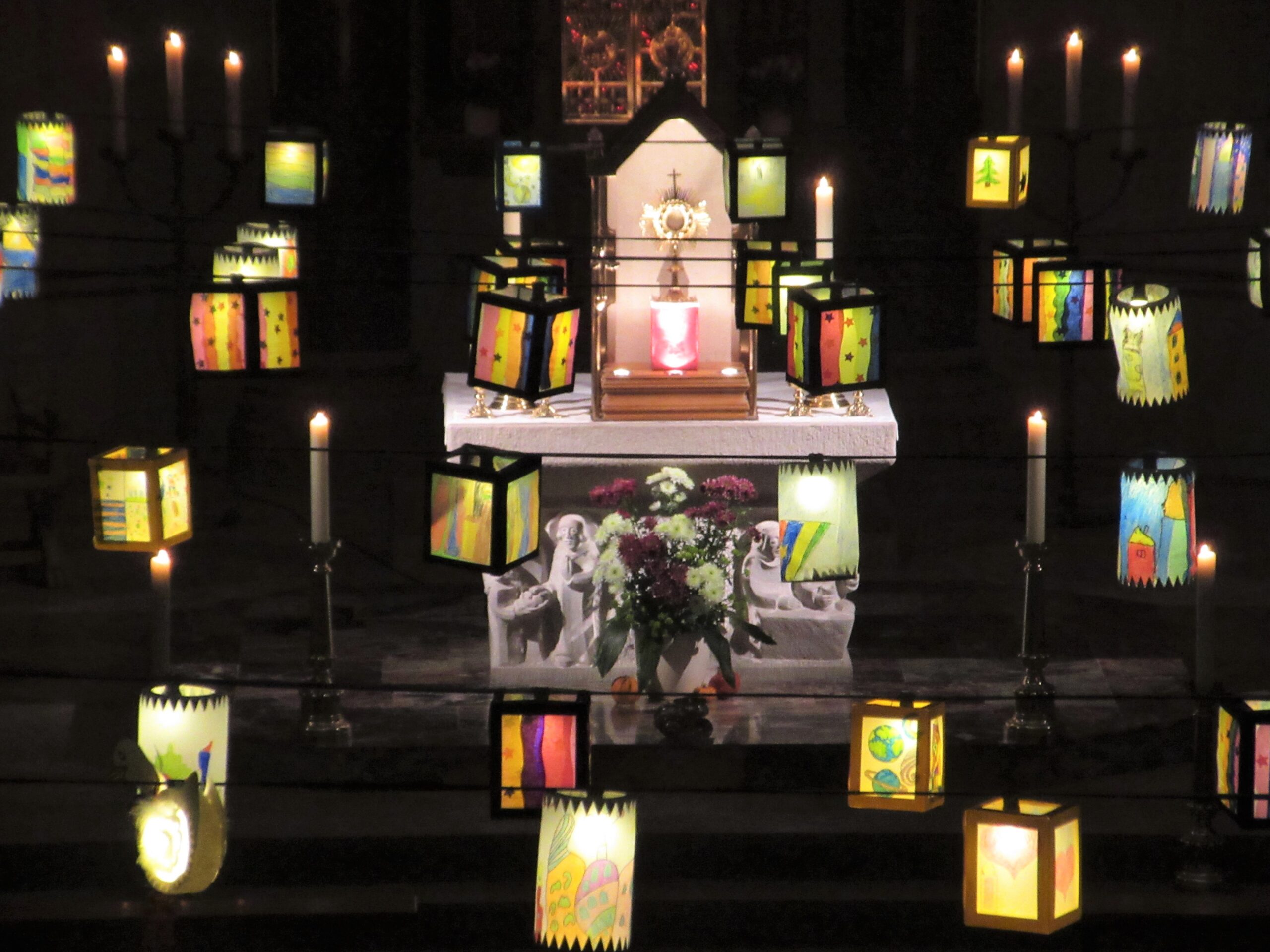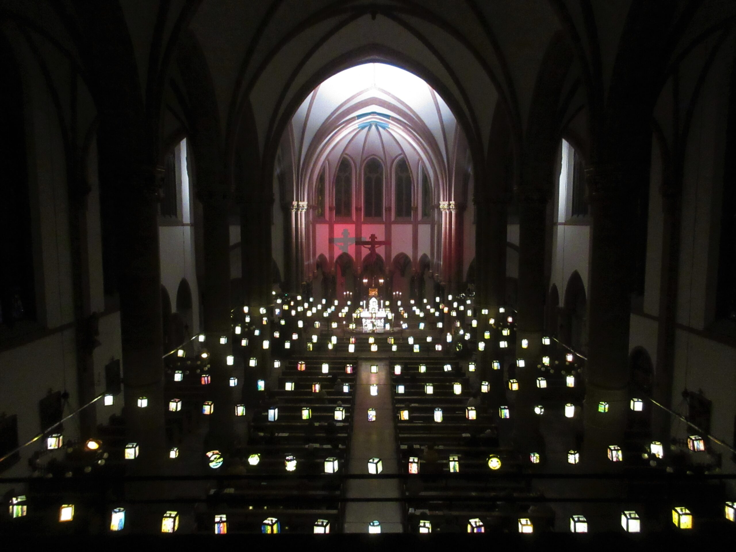 Viele Menschen haben bei der Aktion „Fronleichnam im Pizzakarton“ engagiert mitgemacht. „Zur Ehre der Eucharistie und Freude Gottes ist ein total schönes Werk entstanden“, so Aleksandra Reichert, die Sorge hatte, dass in der Pandemie das kirchliche Leben einschlafen könnte. Ihr Motto „Wer sendet, empfängt auch“ bestätigte sich. Ähnlich auch die Resonanz zu Aschermittwoch: Eine Spende des Aschekreuzes war aufgrund der Pandemie nicht möglich, somit wurden in der Kirche Spiegel aufgestellt, auf die mit einem Plotter Kreuze und Segensspruch ausgeschnitten und übertragen wurden. Im Spiegelbild war dann das persönliche Kreuzzeichen zu sehen. Mit der „Laternenkirche“ im Kiliansdom konnte der PV Letmathe mit einem „niederschwelligen Angebot“ in guter Atmosphäre sogar die ganze Stadt ansprechen und „Licht in eine dunkle Jahreszeit“ bringen. Über 270 von Kindern gebastelte Laternen schmücken die Kirche.