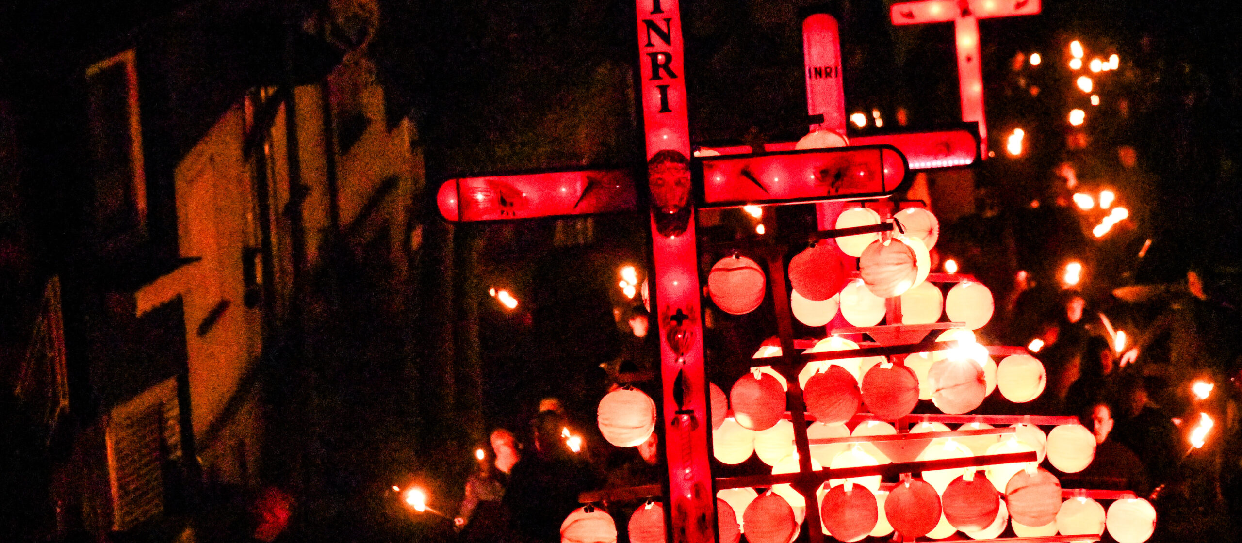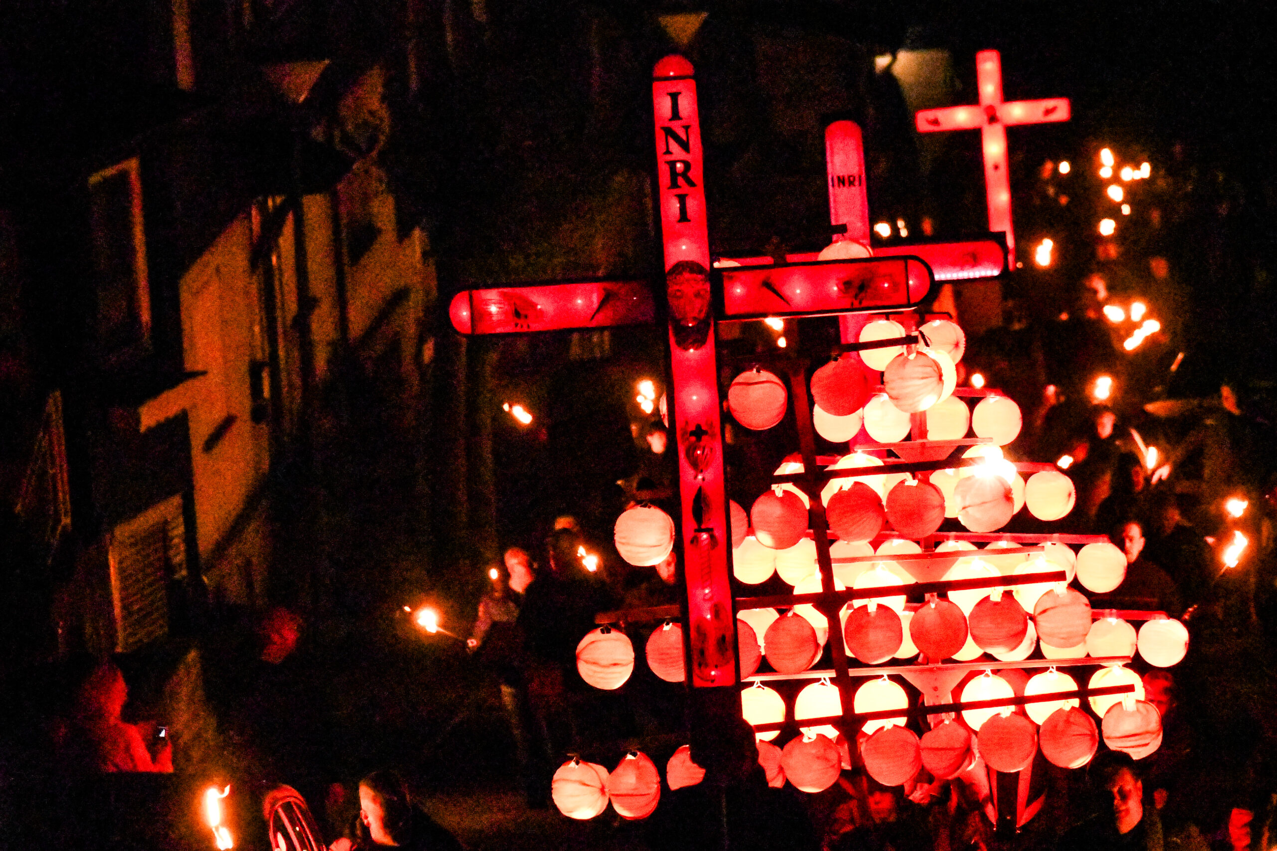 Die Hallenberger Osternacht ist ein Brauch, der seit der Zeit des Barocks annähernd unverändert geblieben ist. Mit Lärm und Licht wird das schmerzvolle Dunkel der Passion Christi vertrieben. Es ist eine Tradition, die aus ursprünglich heidnischem Brauchtum hervorging. Für die Hallenberger Heribert Knecht und Georg Glade ist klar: Wenn sie mit der Osternacht durch ihre Stadt ziehen, dann wird die Freude der Auferstehung, die Freude des Osterfestes für sie gegenwärtig. Das Fest ohne diesen Lichterzug zu feiern, ist für sie unvorstellbar.