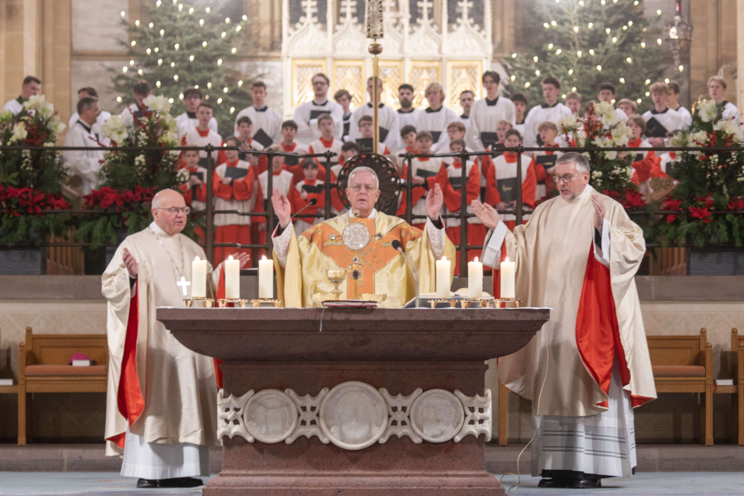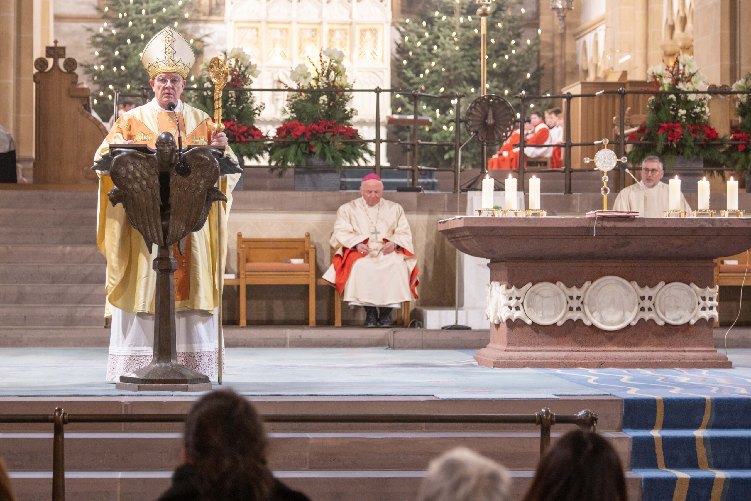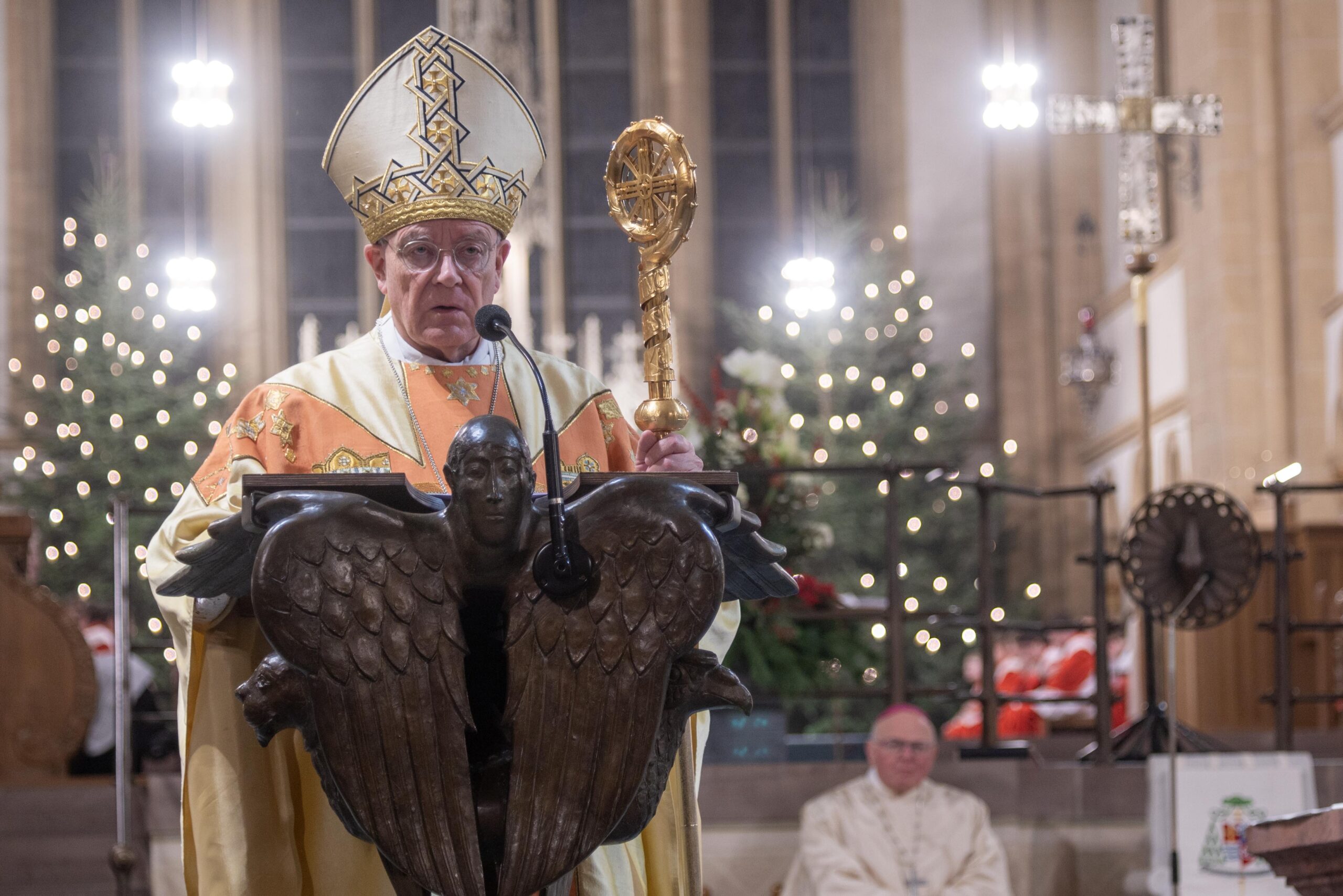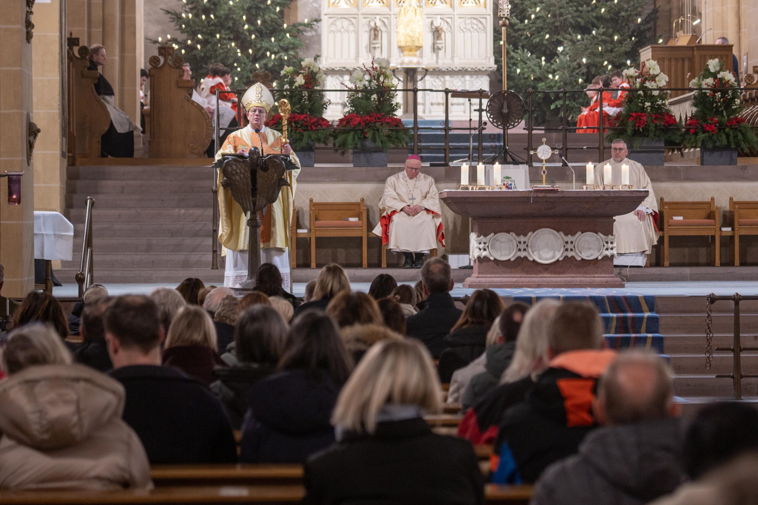 Weihbischof Matthias König rief am Hochfest der Erscheinung des Herrn (Epiphanie) dazu auf, sich von Jesus Christus berühren zu lassen und sich für ihn zu öffnen. „Jesus Christus will bei uns ankommen. Seine Herrlichkeit will uns erreichen und berühren. Sie will in uns eindringen und uns verwandeln“, bekräftigte Weihbischof König in seiner Predigt im Pontifikalamt im Hohen Dom zu Paderborn. Weihbischof Hubert Berenbrinker und Offizial Markus Stadermann konzelebrierten im festlich gestalteten Gottesdienst. Die Katholische Kirche gedenkt am 6. Januar zugleich der „Heiligen Drei Könige“ oder der „Weisen aus dem Morgenland“, wie die im Matthäus-Evangelium (Mt 2) genannten Sterndeuter, die durch den Stern von Bethlehem zu Jesus geführt wurden, gedeutet werden.