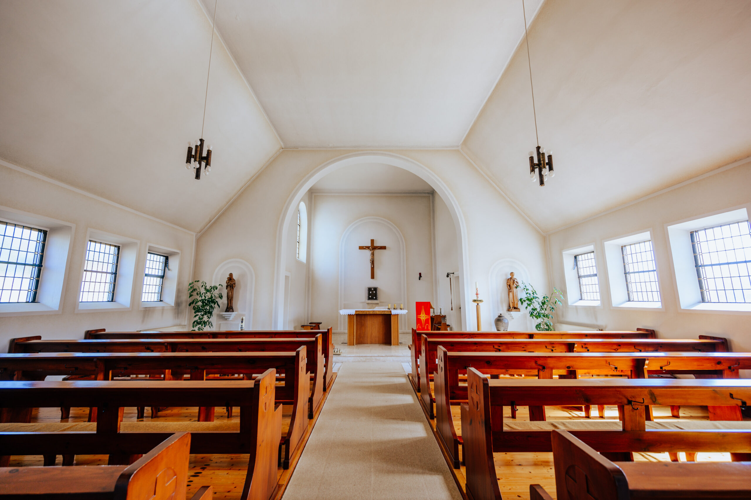 Warm strahlt das Licht hinaus in die klare, kalte Winternacht und lässt die Dorfkirche in Adorf, einem Ortsteil der nordhessischen Gemeinde Diemelsee, heimelig wirken. Den Menschen ein Gefühl von Heimat, von Wärme und Geborgenheit zu spenden, das kommt dem ursprünglichen Zweck von St. Marien sehr nahe. Erbaut wurde die Kirche im Jahr 1950, und notwendig geworden war ihr Bau, weil nach dem Zweiten Weltkrieg viele katholische Heimatvertriebene und Flüchtlinge aus den deutschen Ostgebieten ins ursprünglich protestantische Waldeckische kamen. Ringsum bauten die Neuankömmlinge in Adorf ihre typischen Siedlungshäuschen und benannten die Straßen nach der alten Heimat: Sudetenstraße, Schlesische Straße, Ostpreußenstraße. Ihre Kirche aber bildete die räumliche und geistliche Mitte der neuen Siedlung.