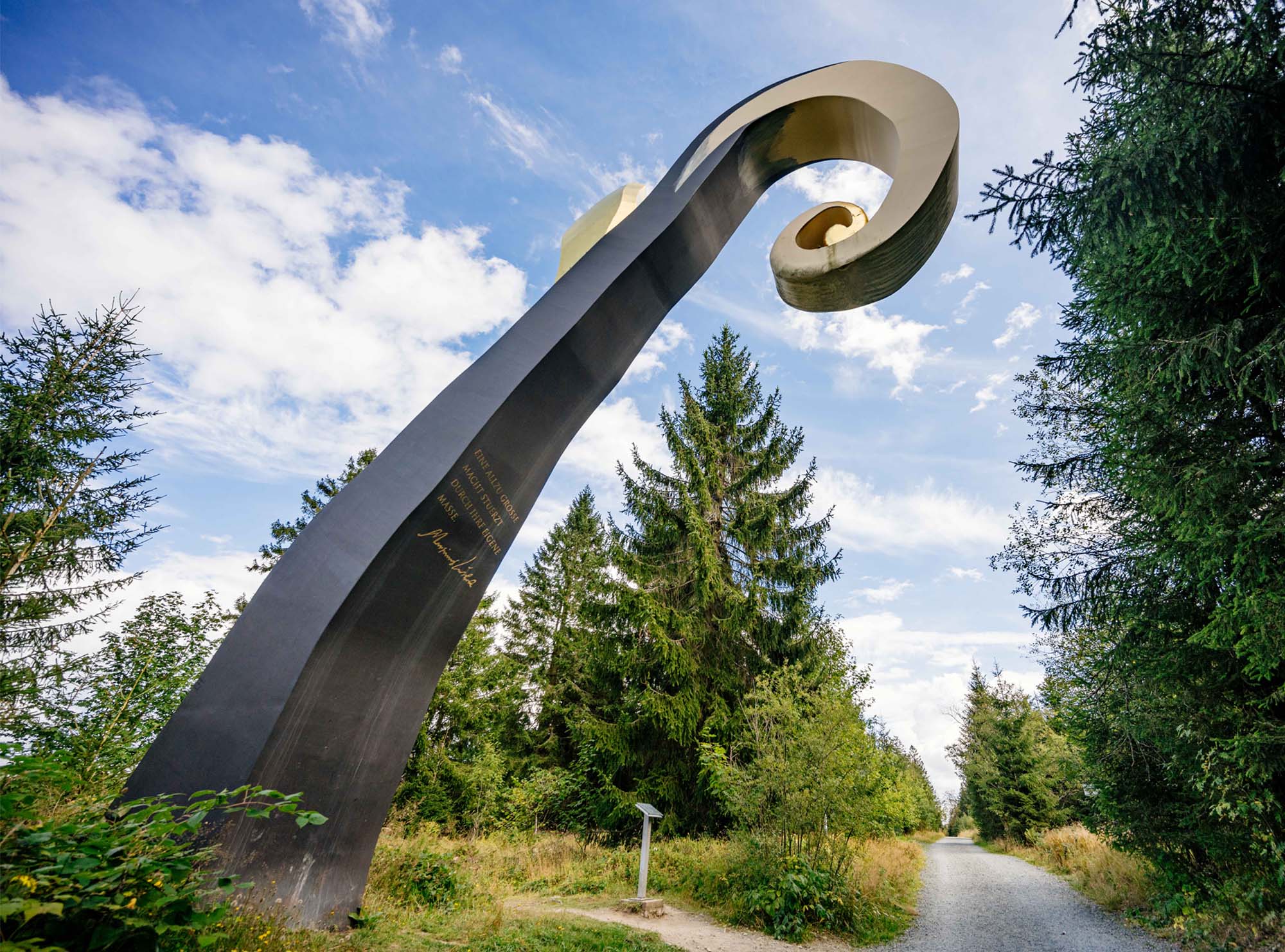 Ein zentrales Kunstwerk des Waldskulpturenwegs ist der in den Jahren 2002 bis 2005 entstandene Krummstab des Künstlers Heinrich Brummack. Wer diese Landmarke am Rothaarkamm besuchen will, muss dafür nicht den ganzen Wanderweg auf sich nehmen. Der Schmallenberger Ortsteil Schanze – der Name des Weilers rührt von einer Landwehr her, mit der die Straße zwischen dem kurkölnischen Sauerland und dem nassauischen Siegen gesperrt werden konnte – ist gut mit dem Auto zu erreichen. Von Schanze aus führt der Weg kerzengerade hoch zum siebeneinhalb Meter hohen Krummstab.