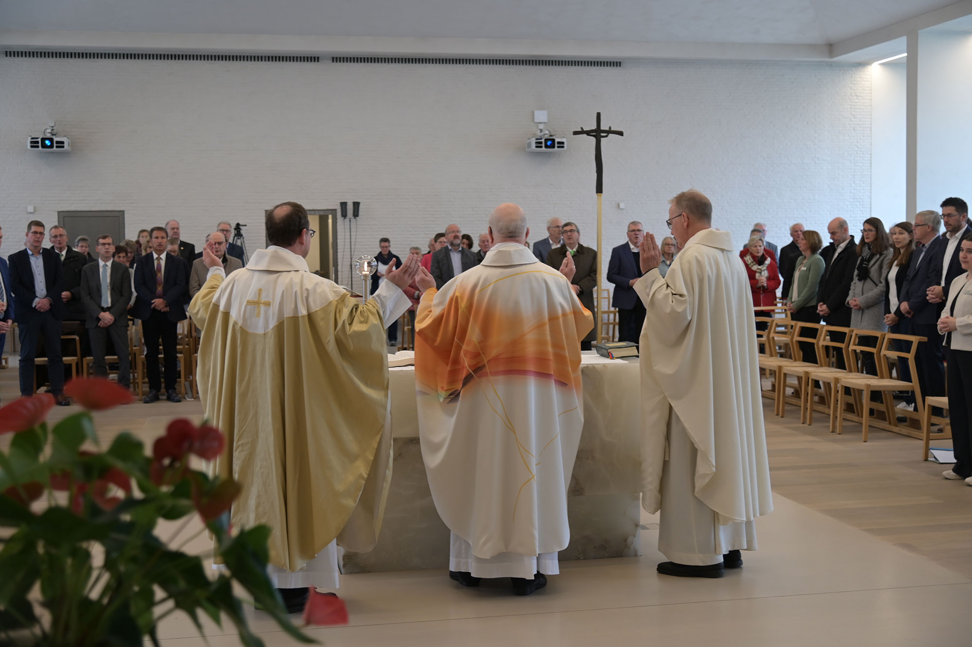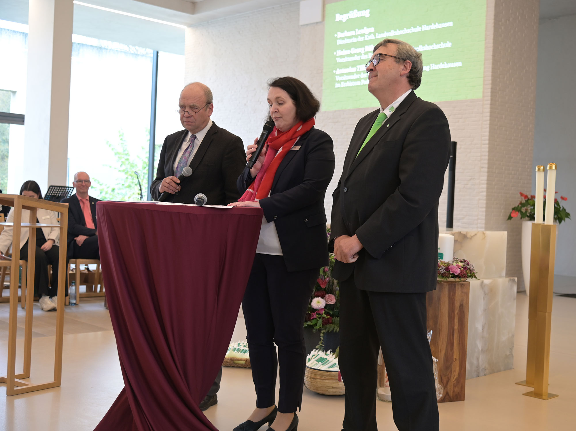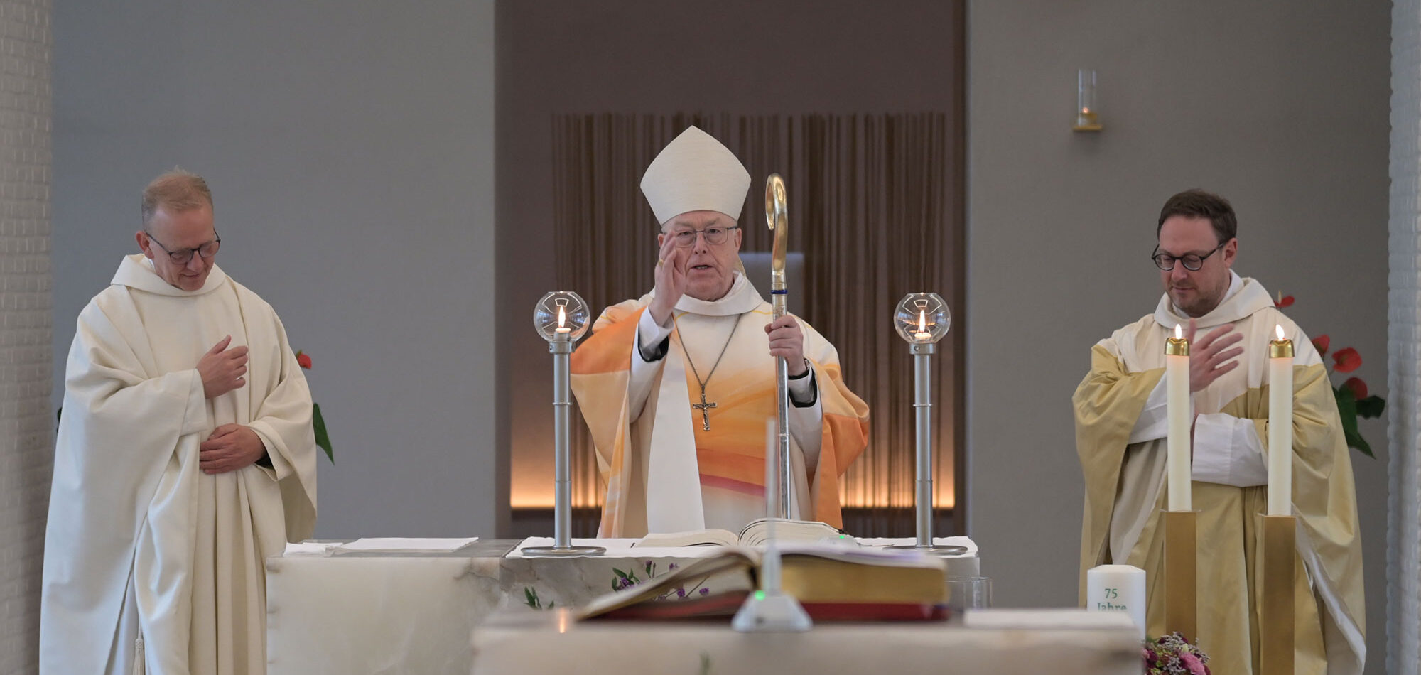 Gerade in einer polarisierten Gesellschaft, in der Landwirtinnen und Landwirte oft pauschal abgewertet würden, müsse deutlich gemacht werden: Jeder Mensch sei durch Gottes Menschwerdung ein Tempel, „in dem Gott selbst Wohnung nimmt“, betonte Erzbischof emeritus Hans-Josef Becker. Kein Mensch dürfe „nur dem Geld und dem Geschäft und der Welt unserer Zwecke und Absichten unterworfen sein“. Die Landvolkshochschule Hardehausen stehe dafür, dass der Mensch Tempel und nicht Markthalle sei, so der emeritierte Paderborner Erzbischof. Neben ihm konzelebrierten Pastor Dr. Peter Jochem als Geistlicher Rektor in Hardehausen und Pastor Dr. Andreas Rohde, Direktor des Bildungs- und Exerzitienhaus St. Bonifatius in Winterberg-Elkeringhausen.
