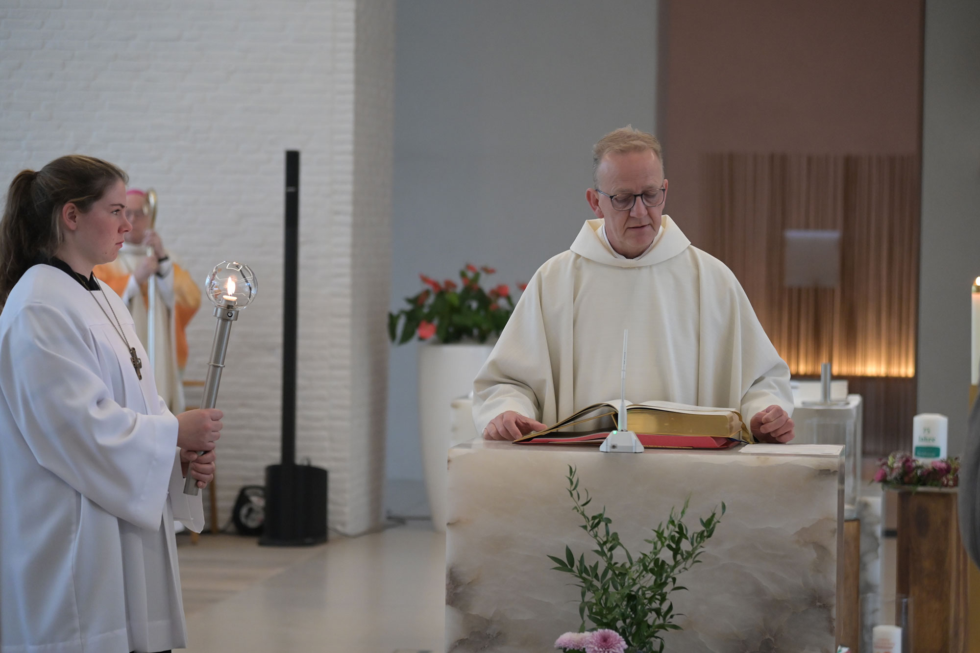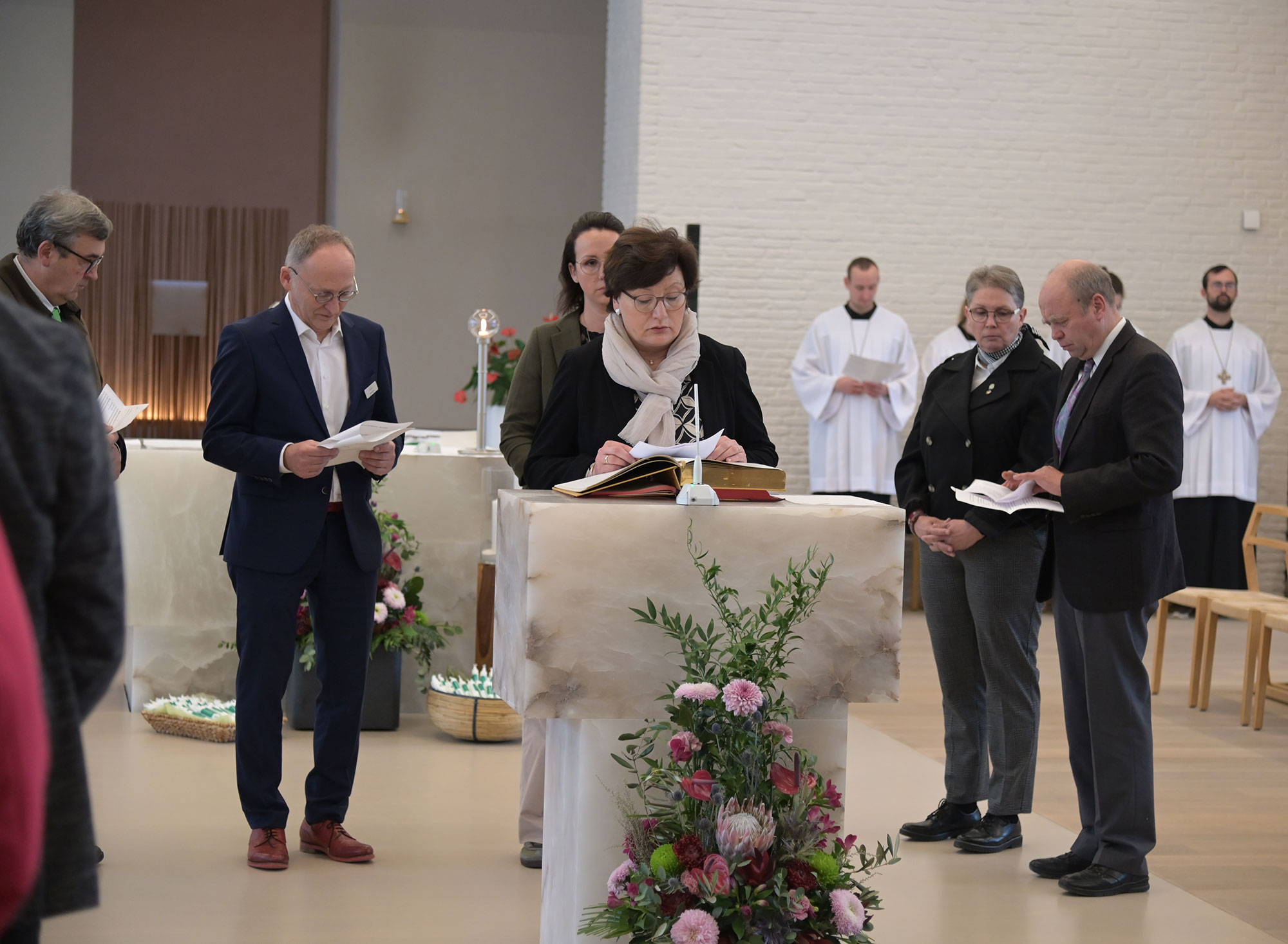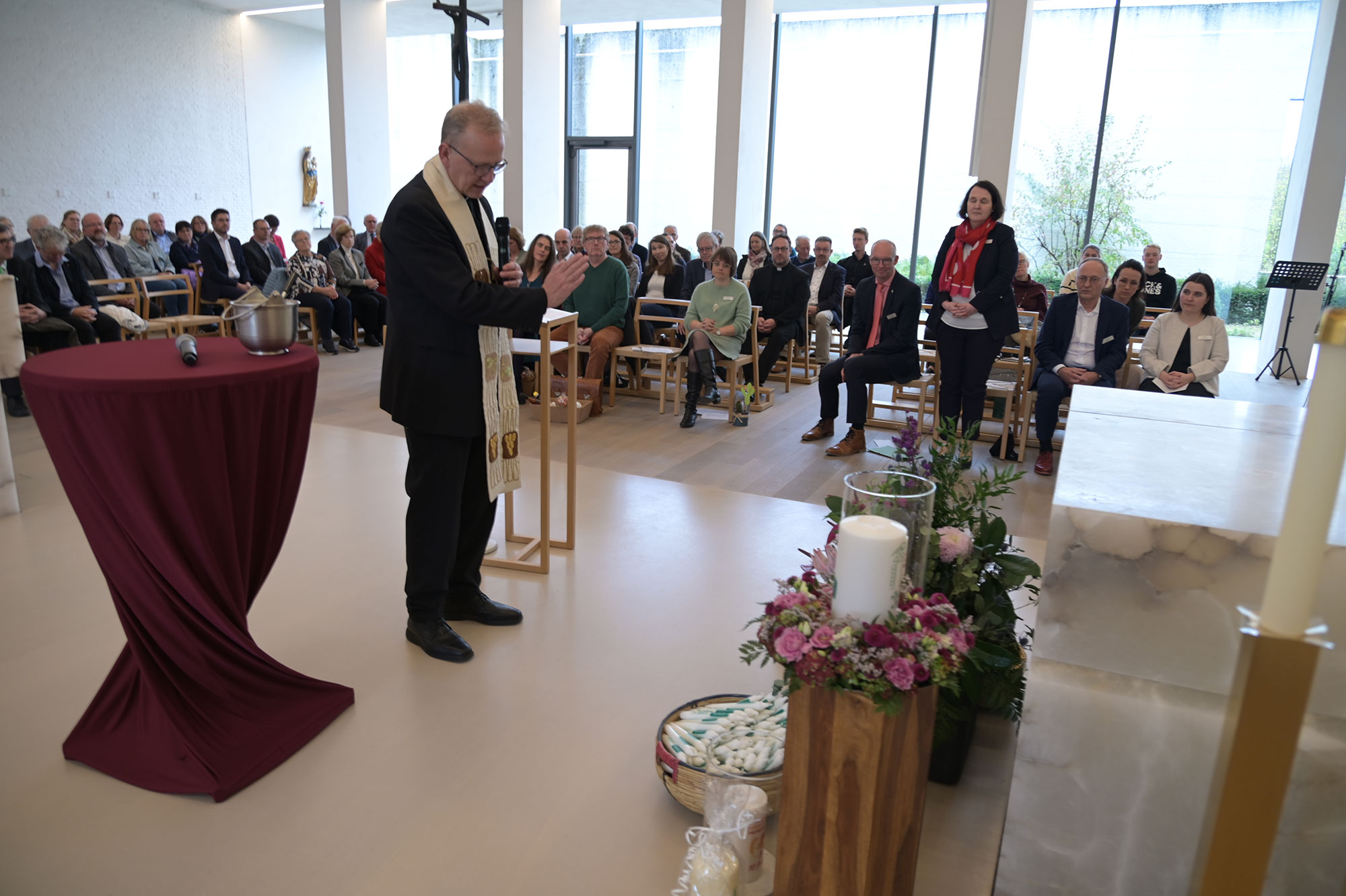 Gerade in einer polarisierten Gesellschaft, in der Landwirtinnen und Landwirte oft pauschal abgewertet würden, müsse deutlich gemacht werden: Jeder Mensch sei durch Gottes Menschwerdung ein Tempel, „in dem Gott selbst Wohnung nimmt“, betonte Erzbischof emeritus Hans-Josef Becker. Kein Mensch dürfe „nur dem Geld und dem Geschäft und der Welt unserer Zwecke und Absichten unterworfen sein“. Die Landvolkshochschule Hardehausen stehe dafür, dass der Mensch Tempel und nicht Markthalle sei, so der emeritierte Paderborner Erzbischof. Neben ihm konzelebrierten Pastor Dr. Peter Jochem als Geistlicher Rektor in Hardehausen und Pastor Dr. Andreas Rohde, Direktor des Bildungs- und Exerzitienhaus St. Bonifatius in Winterberg-Elkeringhausen.