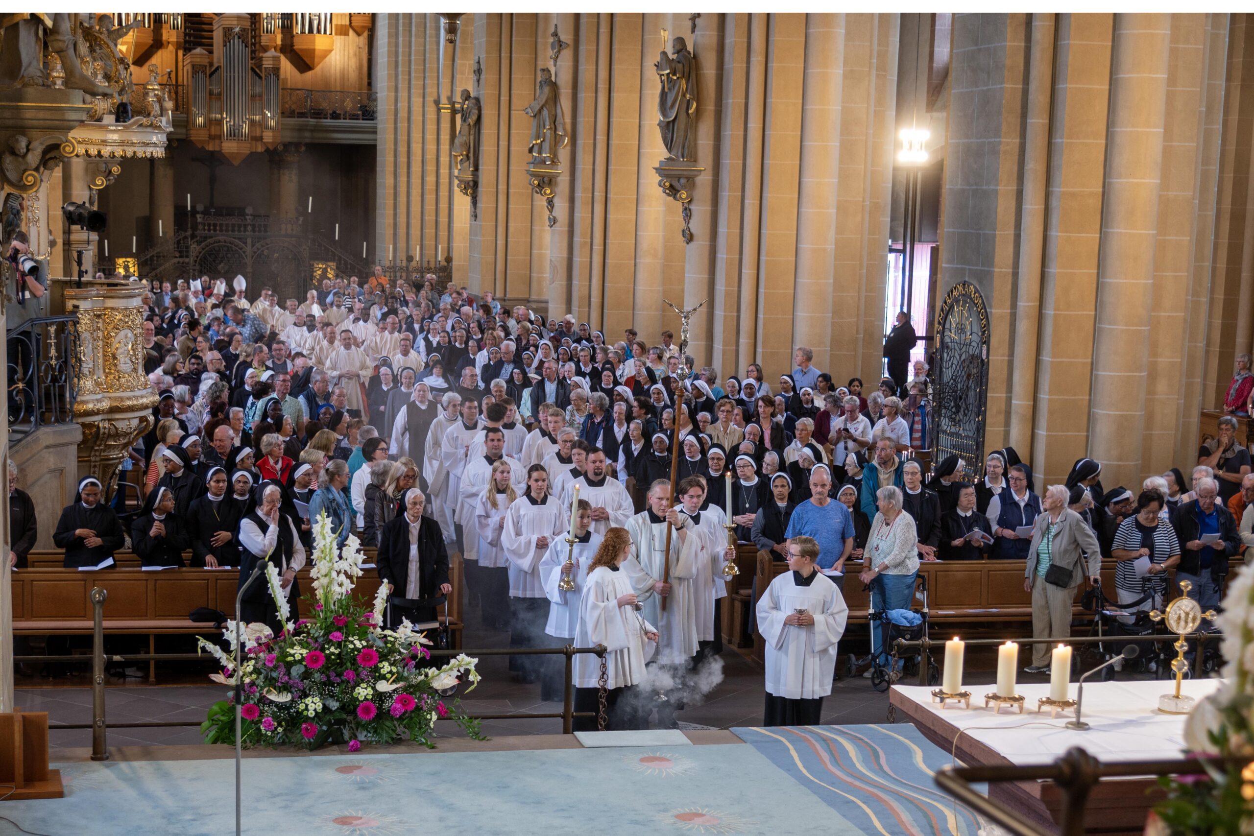Ordensfrauen und Ordensmänner, Missionarinnen und Missionare aus dem Erzbistum Paderborn, die in der Weltkirche wirken, aber auch Missionare, die aus der Weltkirche kommend im Erzbistum Paderborn im Einsatz sind, feierten den Gottesdienst mit und verliehen ihm ein internationales Flair. Missionarinnen und Missionare auf Zeit (MaZ) sowie Vertreterinnen und Vertreter der Muttersprachlichen Gemeinden im Erzbistum Paderborn feierten den Gottesdienst ebenfalls mit.