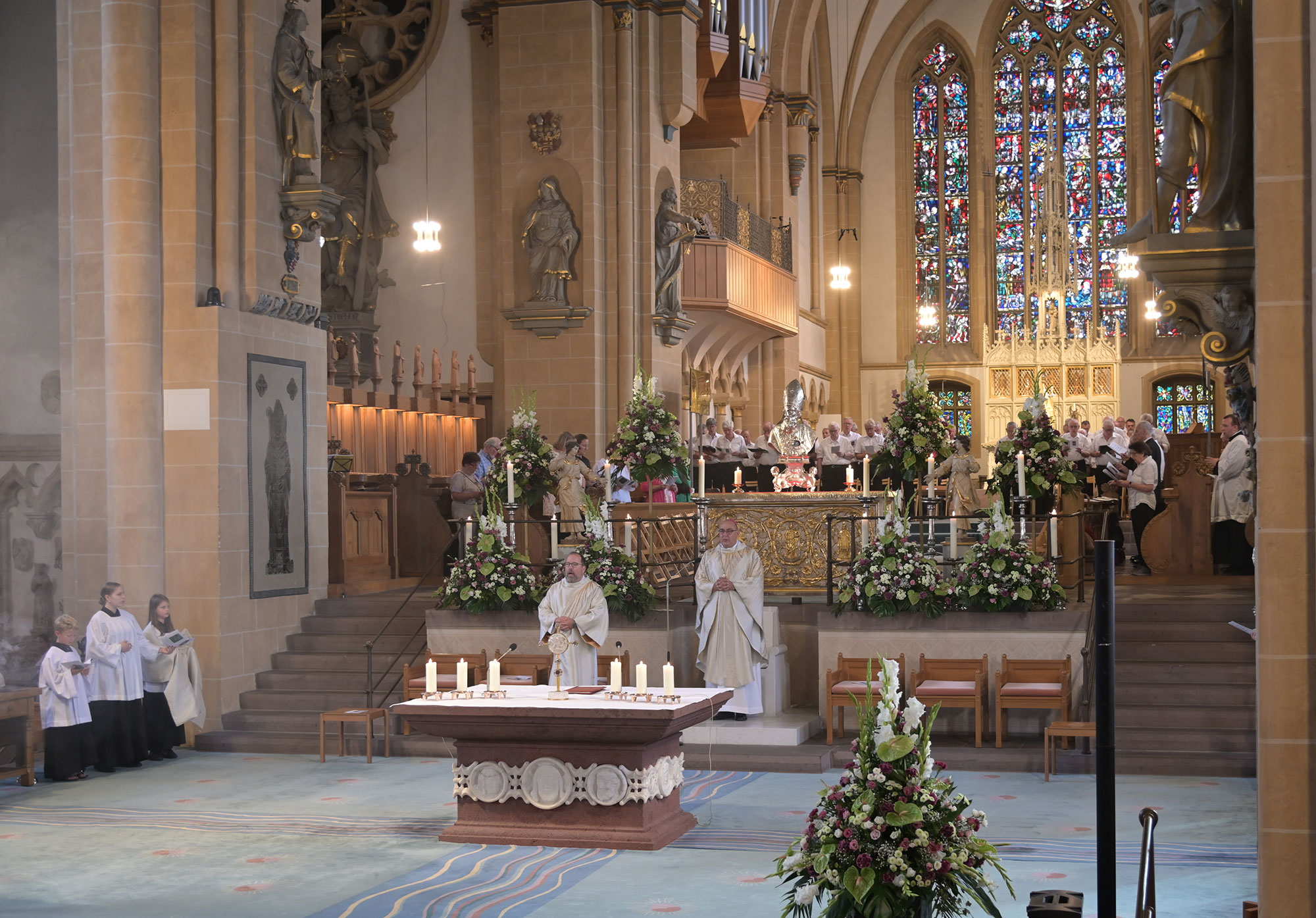 Auch für den Benediktiner selbst beginnt in Kürze etwas Neues: Am 8. September 2024 wird er in sein Amt als neuer Bischof von Osnabrück eingeführt. Am zweiten Libori-Sonntag, 4. August 2024, verabschiedet sich Weihbischof Dr. Dominicus Meier OSB mit einem Pontifikalamt im Hohen Dom von den Gläubigen im Erzbistum Paderborn. Das Pontifikalamt wird auch via Live-Stream übertragen. Gerade vor dem Hintergrund seines Abschieds dankte er den Gläubigen für das gemeinsame Beten und Singen.
