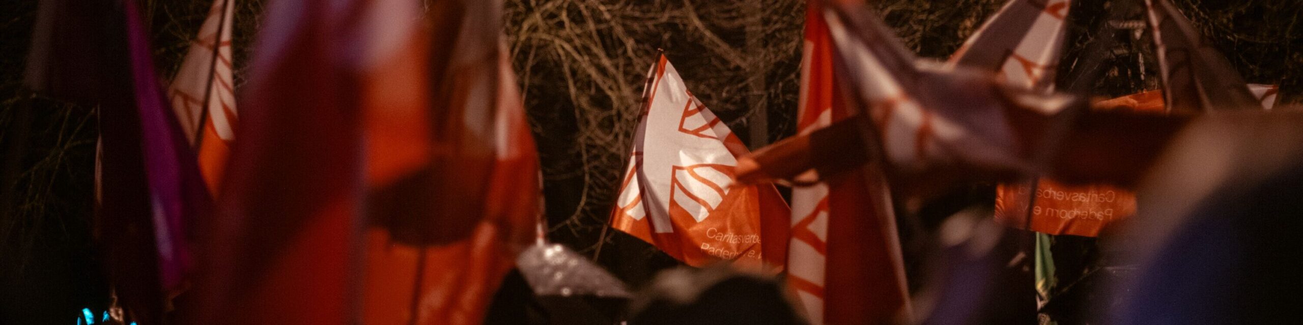 Kurz nach Beginn der Demonstration ist der Parkplatz am Schützenplatz in Paderborn voll. Gelbes Flutlicht beleuchtet ein Meer aus Köpfen und Pappschildern und Fahnen. Und es werden immer noch mehr. „Der Strom an Menschen reißt nicht ab“, sagt Dechant Benedikt Fischer. Der Leiter des Dekanats Paderborn hat auf der Bühne gerade ein Statement abgegeben, jetzt blickt er auf die Menschen, die über den Platz hinaus bis auf die Straße stehen.