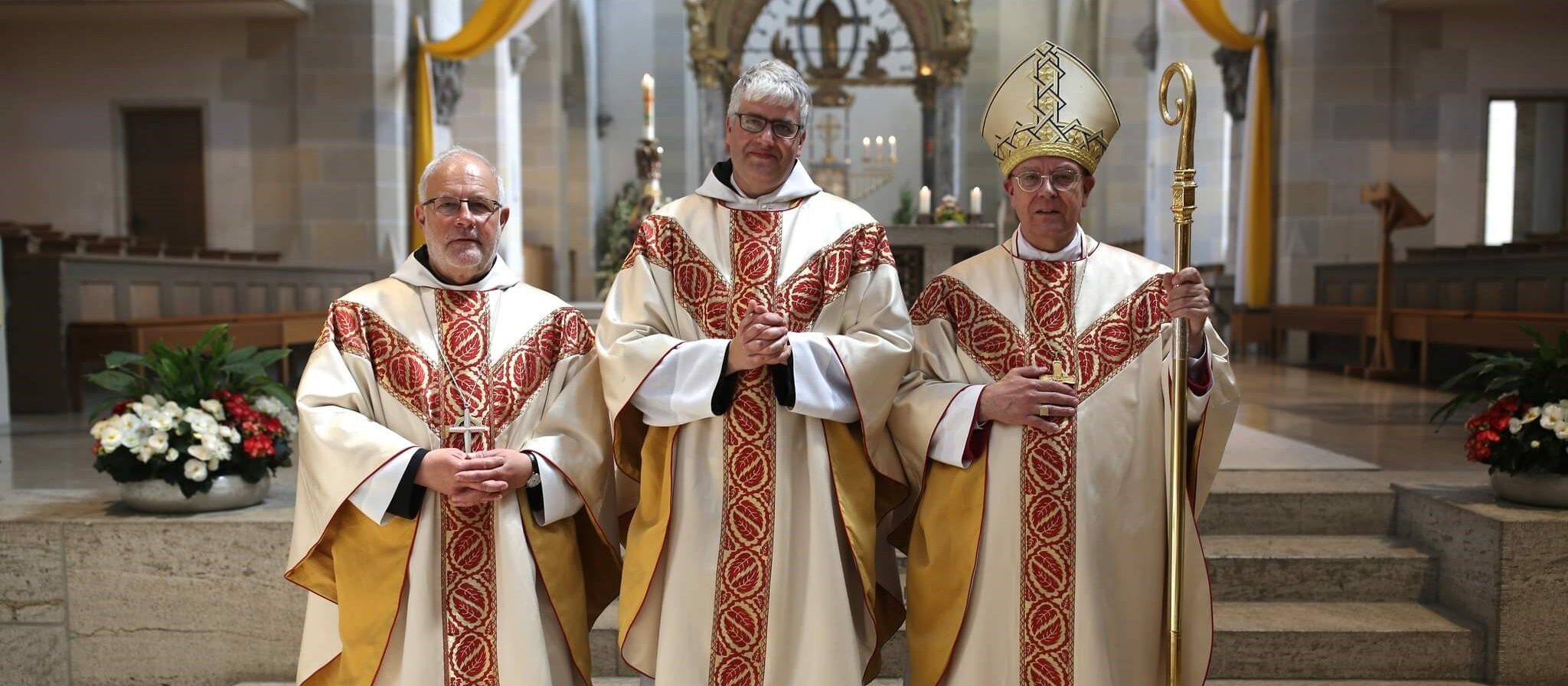 Weihbischof König dankte dem Erzabt für die herzliche Aufnahme der „Tornadoflüchtlinge“ aus dem schwer geschädigten Paderborn. Mit den Worten „Hier bin ich!“ bekundete Bruder Simon dann vor allen Anwesenden seine Bereitschaft zum priesterlichen Dienst. Auf die Frage des Bischofs, ob der Erzabt und die Mitbrüder ihn für würdig befinden, dieses Amt anzutreten, kam ein klares „Ja, wir haben ihn für würdig befunden!“.