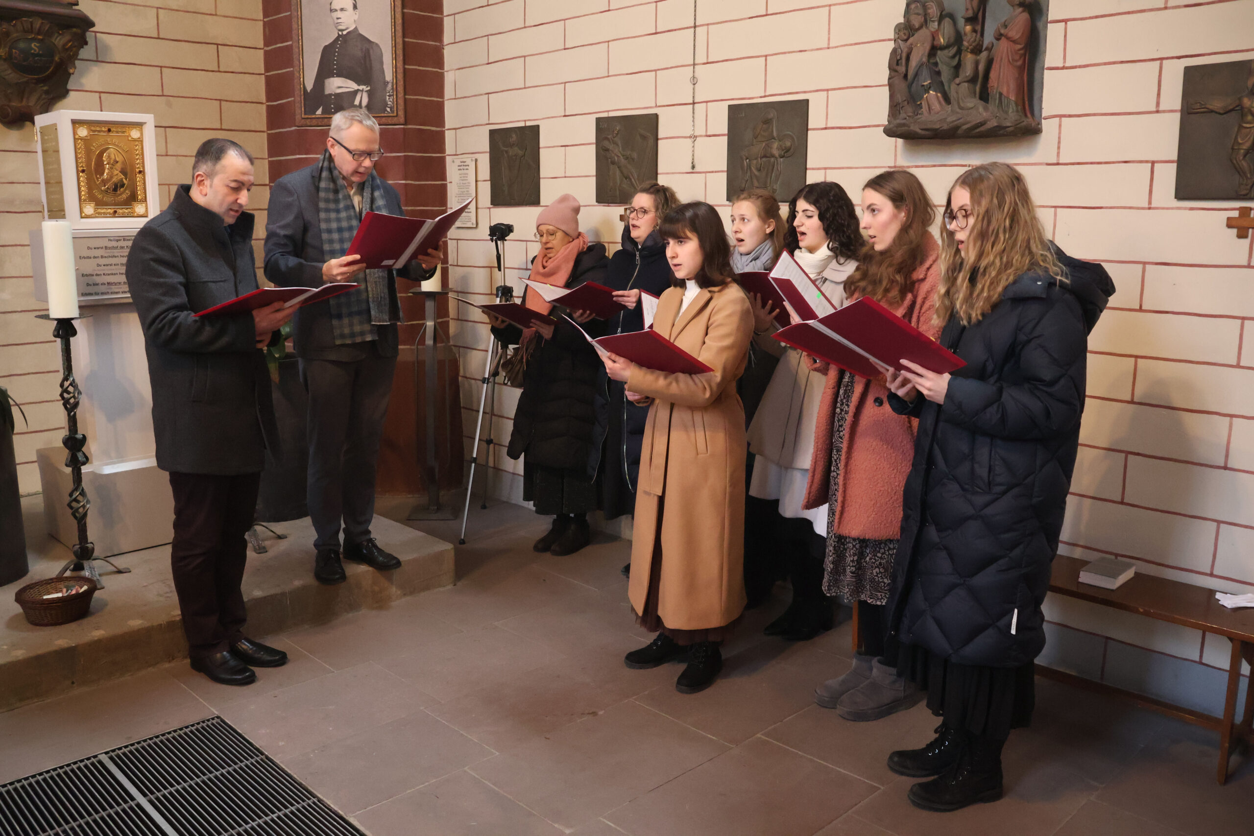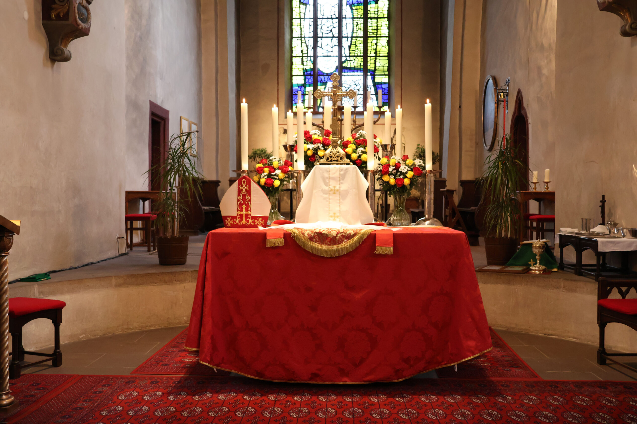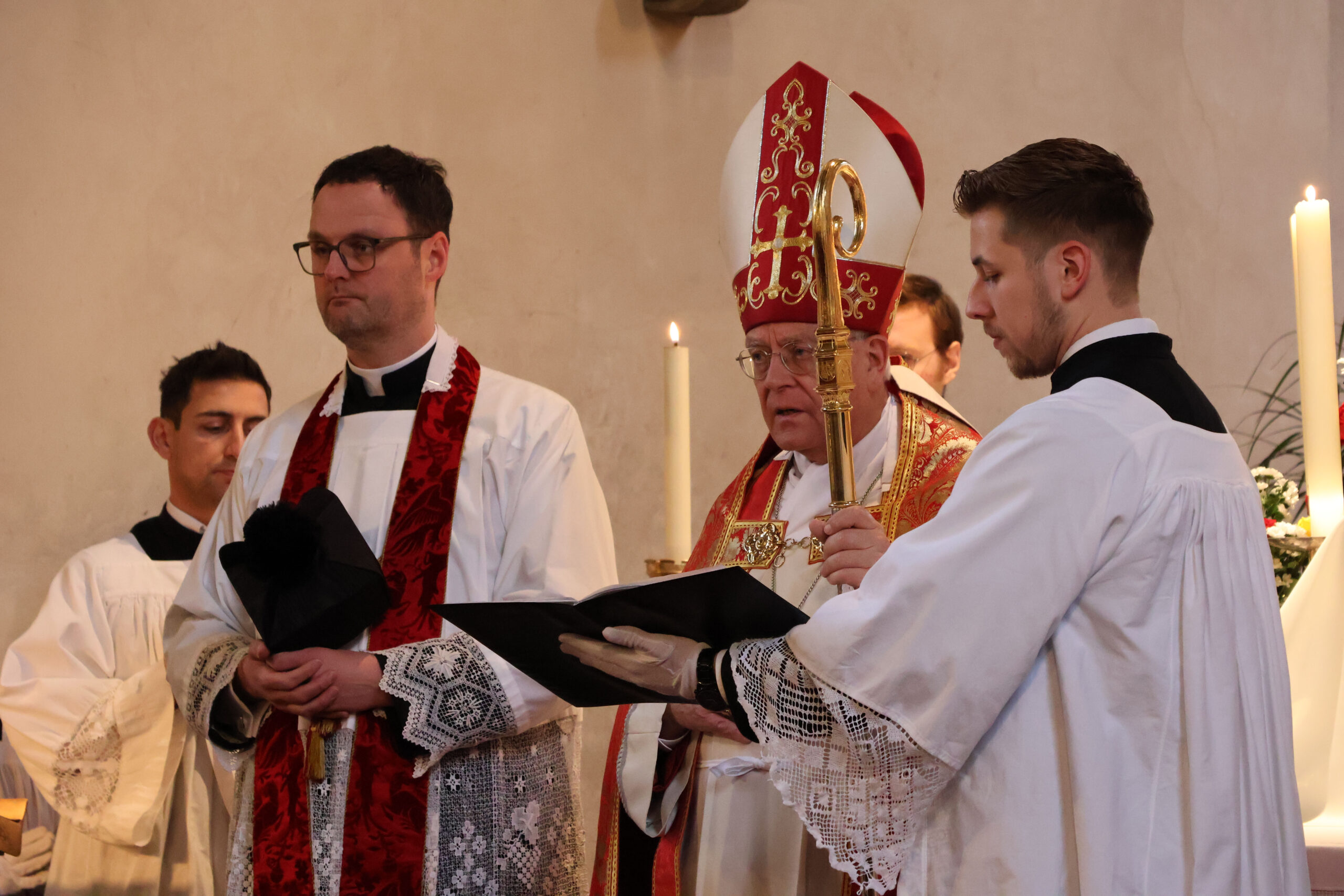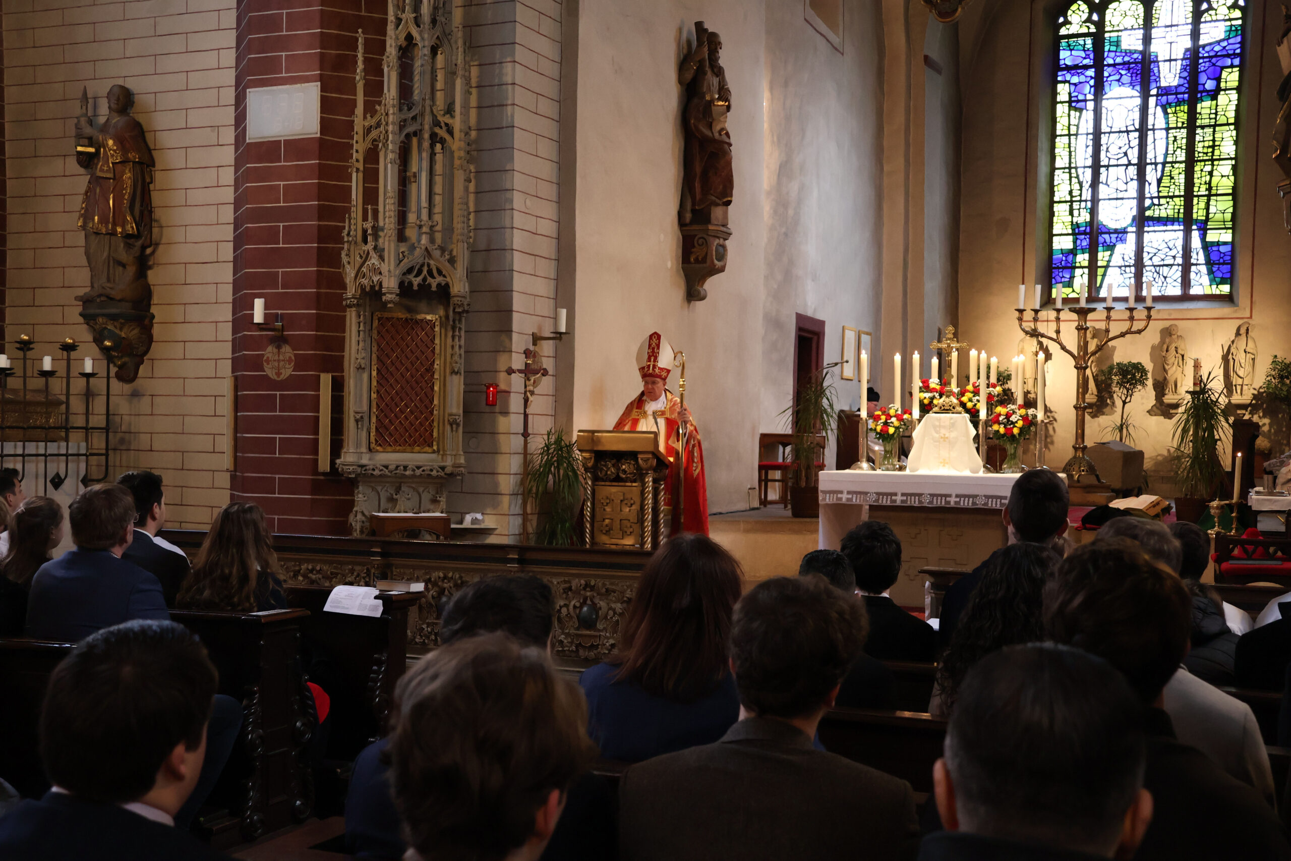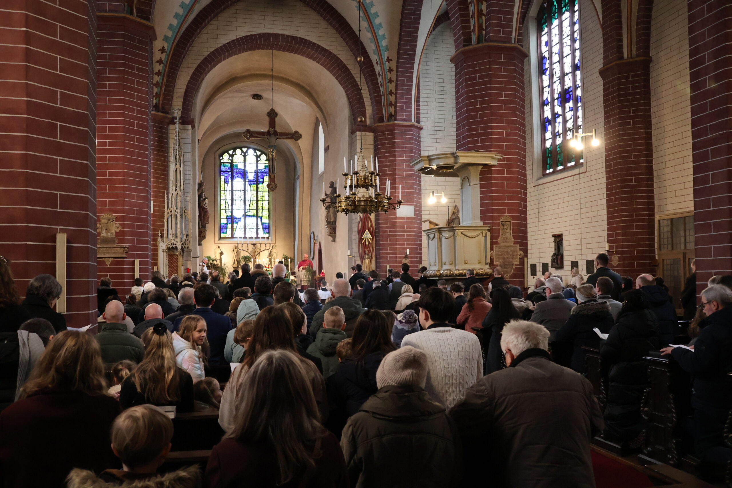 Diese und die vielen anderen Gäste in der nahezu voll besetzten Busdorfkirche erlebten einen Gottesdienst, der einen eigenen Charakter hatte. Die liturgischen Gesänge sowie das Orgelspiel erfüllten das Kirchenschiff und von zwei Chören vielstimmig bereichert kam die Akustik des Jahrhunderte alten Gotteshauses zum Tragen. Pastor Thomas Zwingmann feierte die Messe – der Tradition folgend – überwiegend mit dem Rücken zur Gemeinde. Die lateinischen Formeln und Gebete klangen authentisch und würdevoll.