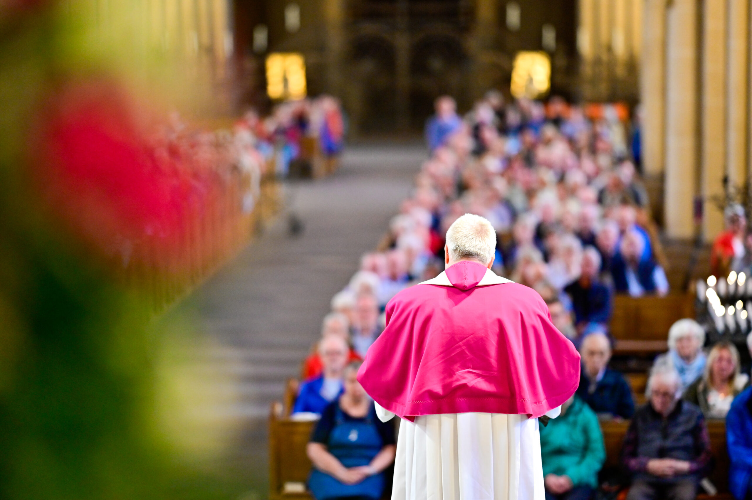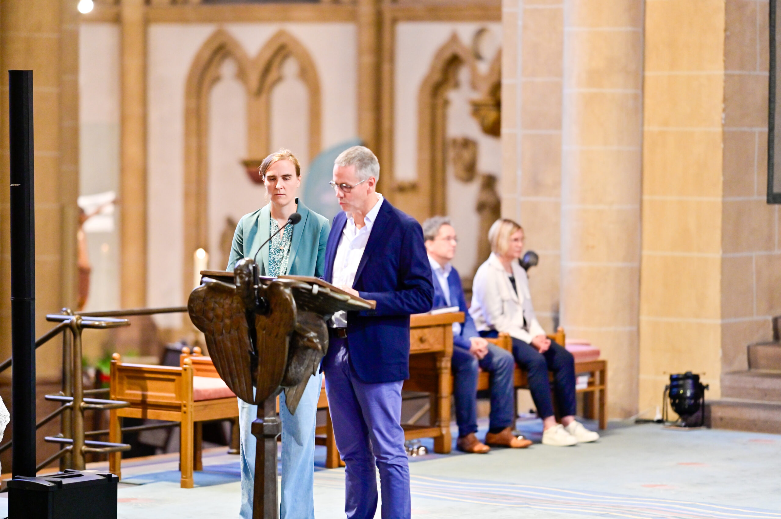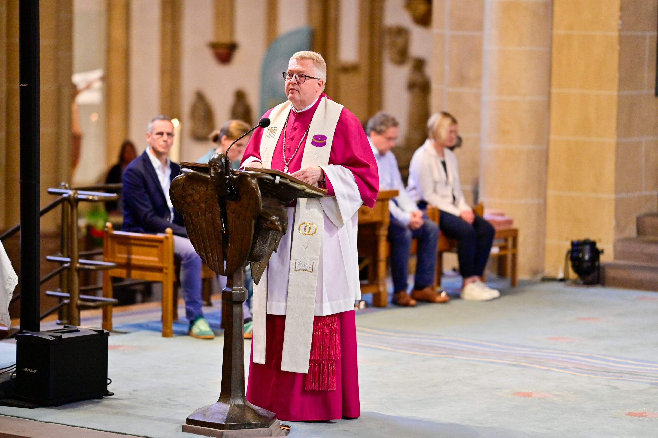 Der Schritt zum Neuanfang sei in Noahs Fall kein Blitz des Himmels, sondern langsames Werden, erinnerte der Generalvikar. „Und dann spricht Gott: ‚Geh hinaus aus der Arche, du und deine Frau, deine Söhne und die Frauen deiner Söhne mit dir.‘ Ein Neuanfang, gemeinsam. Gott ruft sie heraus ins Leben, nicht zurück ins Alte. Der neue Weg beginnt nicht allein, sondern nebeneinander“, erklärte Dr. Bredeck. Paare und wir alle müssten den Weg nicht vorher kennen, die Zukunft nicht durchplanen – es gelte, sich von Gott rufen zu lassen – gemeinsam. „Vertrauen heißt, bereit zu sein, einen Schritt zu gehen – mit Gott zwischen euch“, so der Generalvikar weiter.