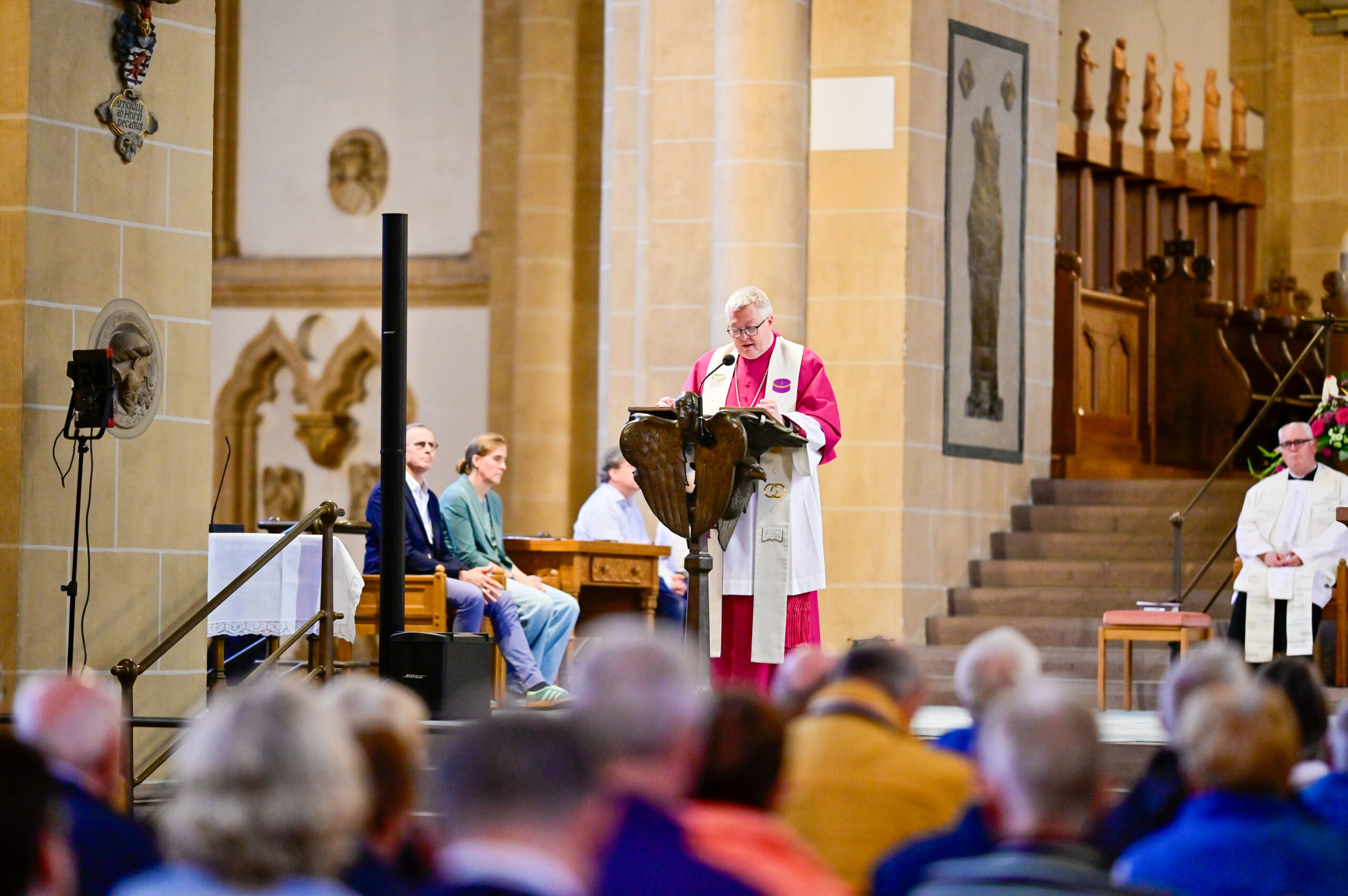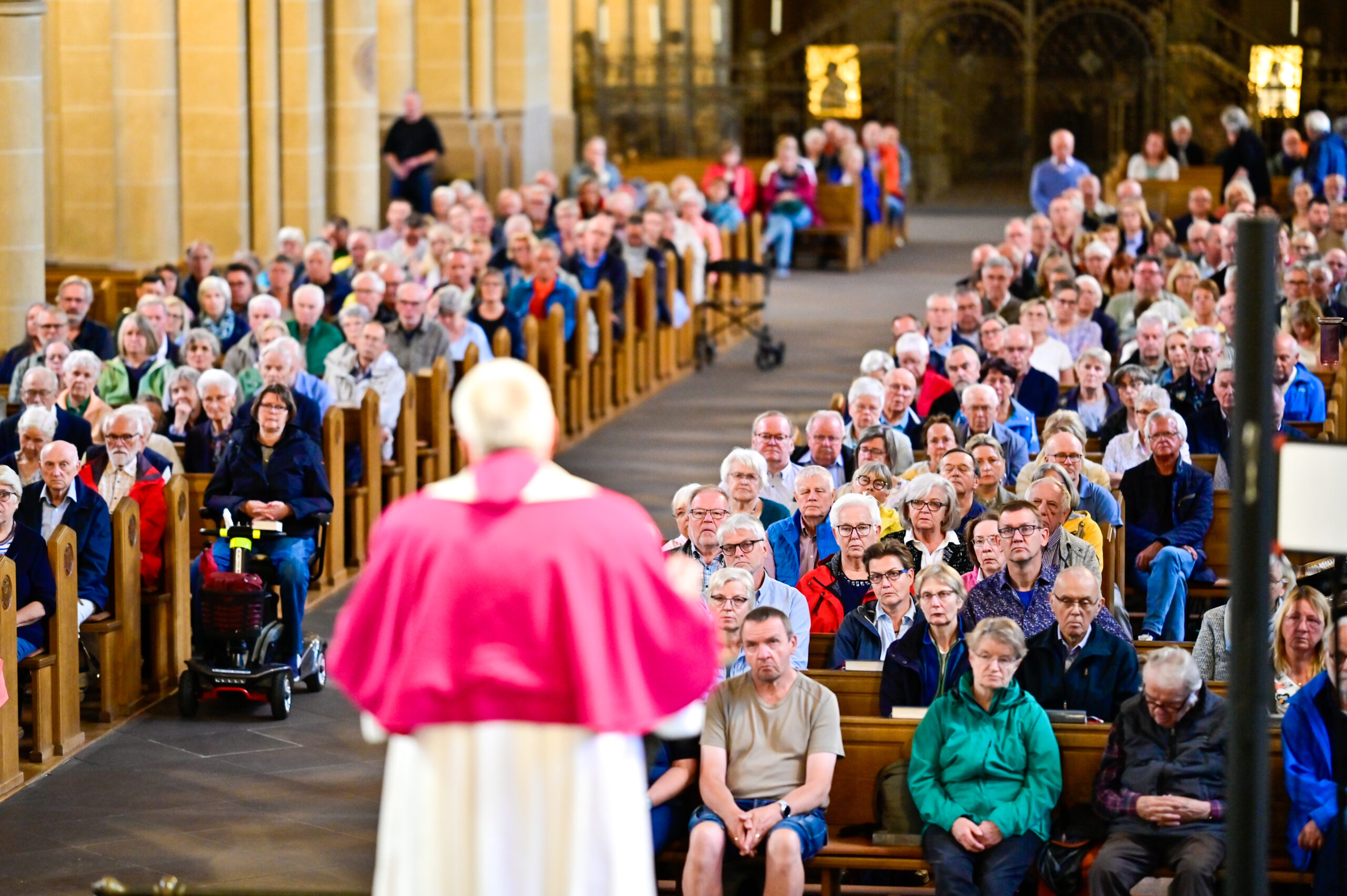 „Was, wenn wir nicht wissen, wie es weitergeht? Was, wenn das, was hinter uns liegt, an uns nagt? Was, wenn das Morgen nicht planbar ist – nicht in der Ehe, nicht in der Familie, nicht im Leben?“ Das Libori-Leitwort „Vertrauen ins Morgen“ könne sich angesichts dieser Fragen „schnell gesagt“ anfühlen, merkte Generalvikar Dr. Michael Bredeck in seiner Predigt an. Noah, seine Frau und ihre Familie haben der biblischen Erzählung nach, die große Flut überstanden: „Wochen, Monate in der Enge der Arche. Warten. Geduld. Ungewissheit. Kein Land in Sicht. Und dann: Bewegung. Hoffnung. Der Schritt ins Neue“, schilderte der Generalvikar die aufreibende Reise, die Noah und seine Frau als Paar und als Familie durchlebten.