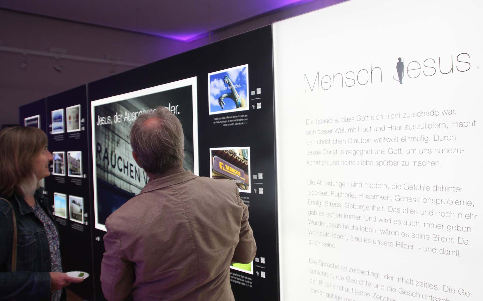 Regina Peis hat die Ausstellung begleitet und berichtet von vielen Begegnungen. „Die Besucher fühlten sich dort abgeholt, wo sie gerade herkamen: dem Kino, der Eisdiele, dem Schwimmbad, von der Straße, mit allen Emotionen, die sie dabei begleiten“, erzählt sie. „Jesus Christus hier und jetzt und nicht nur vor 2000 Jahren. Keine bloße Erzählung, sondern mitten im Leben, und das bei durchgängigen Öffnungszeiten.“