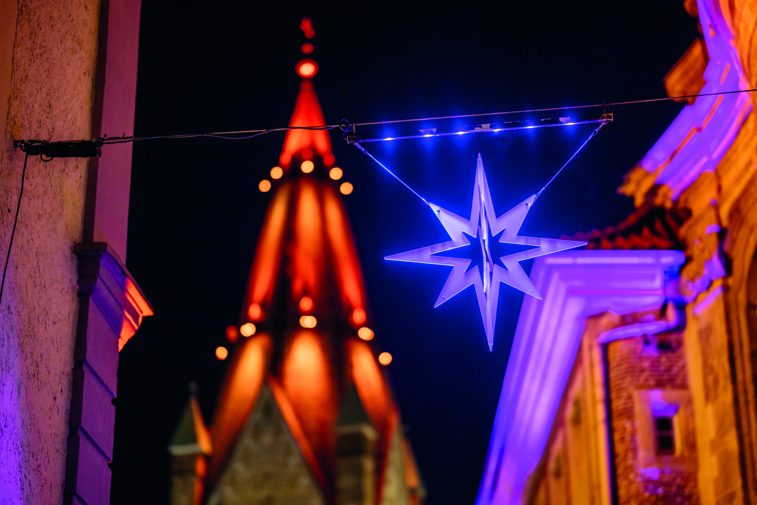 Grube. Diesen Namen trägt in Paderborn eine Gasse, die als Verlängerung der Liboristraße vom Kamp zum Hohen Dom führt. In der Grube befinden sich viele Einzelhandelsgeschäfte, und hier ist auch der Punkt, an dem der Fotograf Besim Mazhiqi sein Stativ aufbaute, um das Bild für dieses Kalenderblatt aufzunehmen. Aber nicht nur bei Berufsfotografen ist dieser Fotospot, wie es neudeutsch heißt, für seine Lichtstimmung bekannt. „Ich habe die Stelle schon vor über zehn Jahren entdeckt, als ich zum Studieren nach Paderborn kam“, erzählt Alexandros Sarmas. „Schon damals hing der Stern an dieser Stelle, und mir ist mit einer ganz einfachen Digitalkamera ein wunderschönes Bild der Szenerie gelungen.“ Sein Bild, räumt Sarmas ein, sei technisch nicht so perfekt wie das Foto des Berufsfotografen. Dennoch vereint es für ihn alles, was Weihnachten in Paderborn ausmacht: „Trotz der winterlichen Kälte leuchtet in der Stadt ein warmes, familiäres Licht. Der Weihnachtsstern ist ein Symbol der Hoffnung. Weltliches und Geistliches sind miteinander verbunden, und hinter allem steht hoch aufragend und weithin sichtbar der Dom mit seinem Turm. Wenn der hell erleuchtet ist, wissen alle: Jetzt ist Weihnachten, und Christus ist in der Welt angekommen. Bei diesem Anblick habe ich mich in der fremden Stadt sofort angenommen gefühlt.“