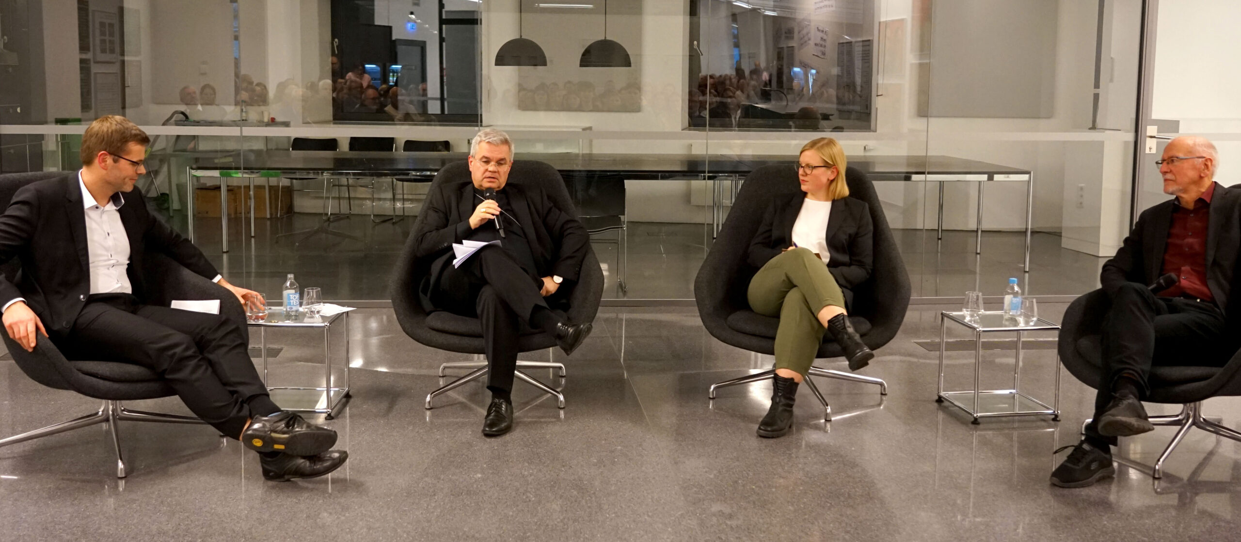 Mit großem Publikumsandrang, darunter auffallend vielen jüngeren Besucherinnen und Besuchern, fand am Donnerstagabend, 20. November 2025, im Dortmunder U die Podiumsdiskussion der Reihe „rethinking religion. Gespräche über Religion im Erzbistum Paderborn“ statt. Unter dem Leitgedanken „Wie kann Zukunft gelingen?“ diskutierten der Paderborner Erzbischof Dr. Udo Markus Bentz, der Physiker und Philosoph Professor Dr. Armin Grunwald und die Salzburger Theologin Dr. Franca Spies über Perspektiven einer gelingenden Zukunft in Zeiten globaler Krisen, tiefgreifender Veränderungen und wachsender gesellschaftlicher Unsicherheiten. Organisiert wurde die Veranstaltung von der Theologischen Fakultät Paderborn und der Professur für Systematische Theologie der TU Dortmund.