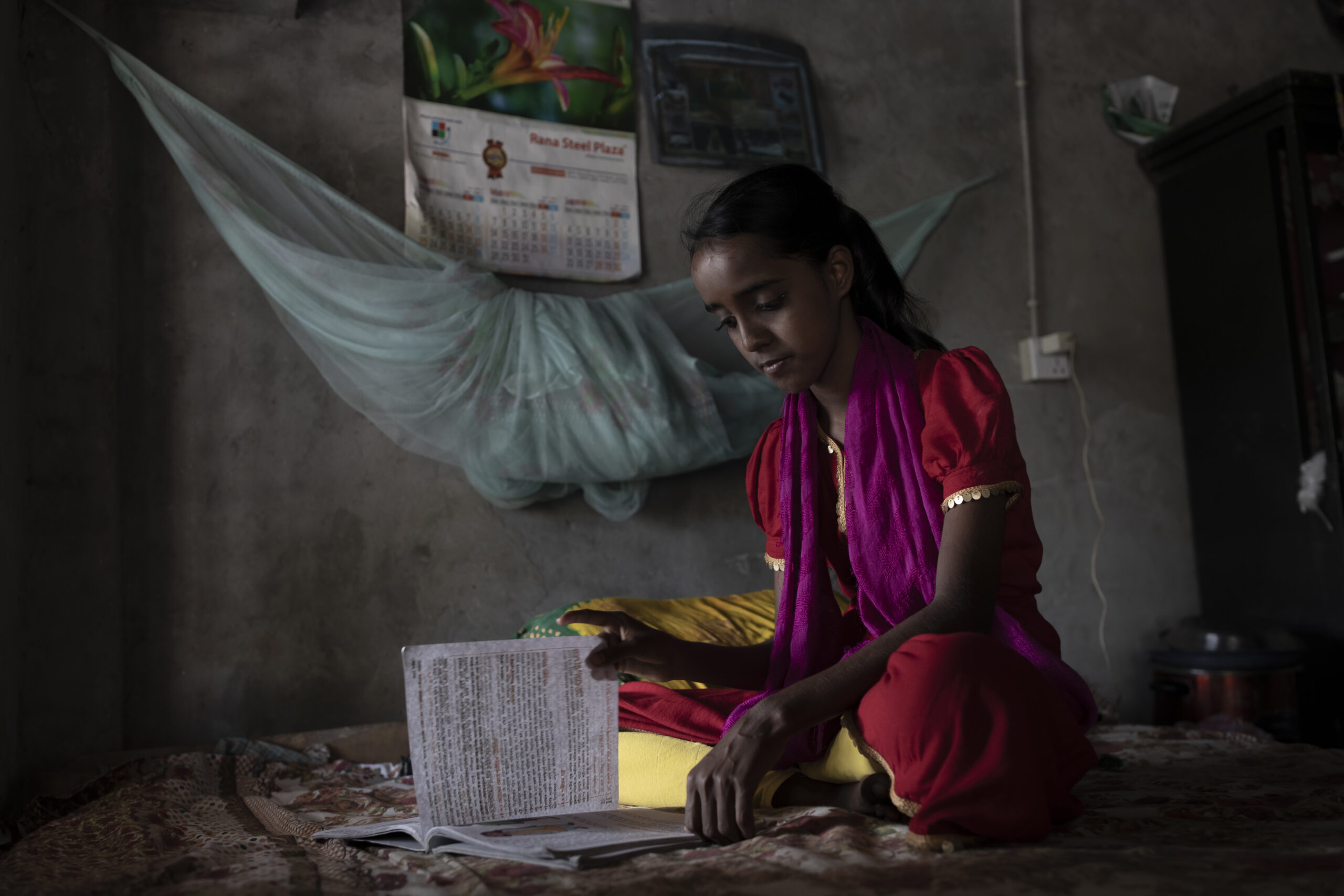 Rhia zog zurück in ihr Elternhaus, wo sie sich nun ein Zimmer mit Nour teilt. Im anderen Zimmer der einfachen Unterkunft lebt ihr Vater. Nours Großvater ist ein von der Arbeit gezeichneter und kranker Mann. Nur mit Mühe kann er aufstehen, meist liegt er regungslos auf seinem Bett. Finanziell kann er seiner Tochter und Enkeltochter nicht unter die Arme greifen, er braucht selbst Hilfe. Doch in Bangladesch gibt es keine staatliche Kranken- und Sozialversicherung. Rhia pflegt ihren Vater, so gut sie kann. Ihre Schwestern leben nicht in der Nähe, sie kommen nur selten.