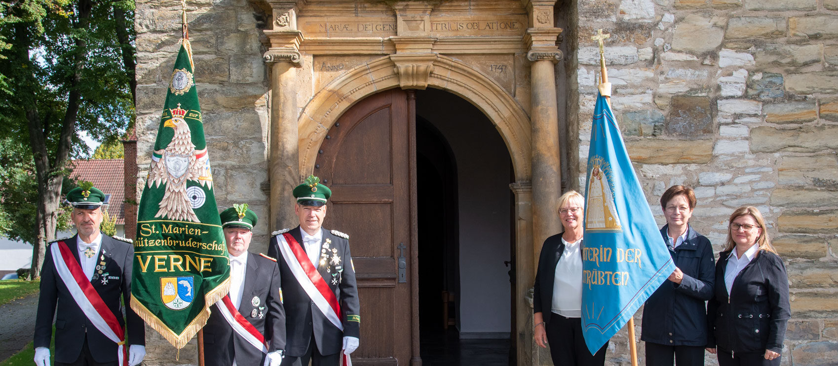 „Als ‚Menschen auf einem Weg‘ möchten wir uns auf unserem Lebens- und Pilgerweg von der Gottesmutter Maria an die Hand nehmen lassen und dankbar auf die kleinen und großen Taten Gottes in unserem persönlichen Leben schauen“, lädt Generalvikar Thomas Dornseifer zur Teilnahme an der Wallfahrt nach Verne ein. „Wir dürfen der Gottesmutter unsere Anliegen, Sorgen und Nöte mitteilen und ans Herz legen – in der Gewissheit, dass Maria sich all dessen annimmt, was uns belastet, und es als unsere Fürsprecherin vor Gott trägt, sie ist ‚Fürsprecherin der Betrübten‘.“