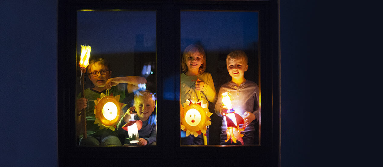 Auch ohne Laternen-Umzüge durch die Straßen soll das Sankt-Martins-Fest in diesem Jahr ein buntes und leuchtendes sein. Das klappt, wenn alle Laternen ins Fenster stellen. Damit Martin oben sehen kann, was ihr unten habt getan. Natürlich sieht er es auch, wenn ihr das Netz zum Leuchten bringt. Macht ein Foto eures Laternenfensters und postet es in den sozialen Medien, mit dem Hashtag #sanktmartin2020.