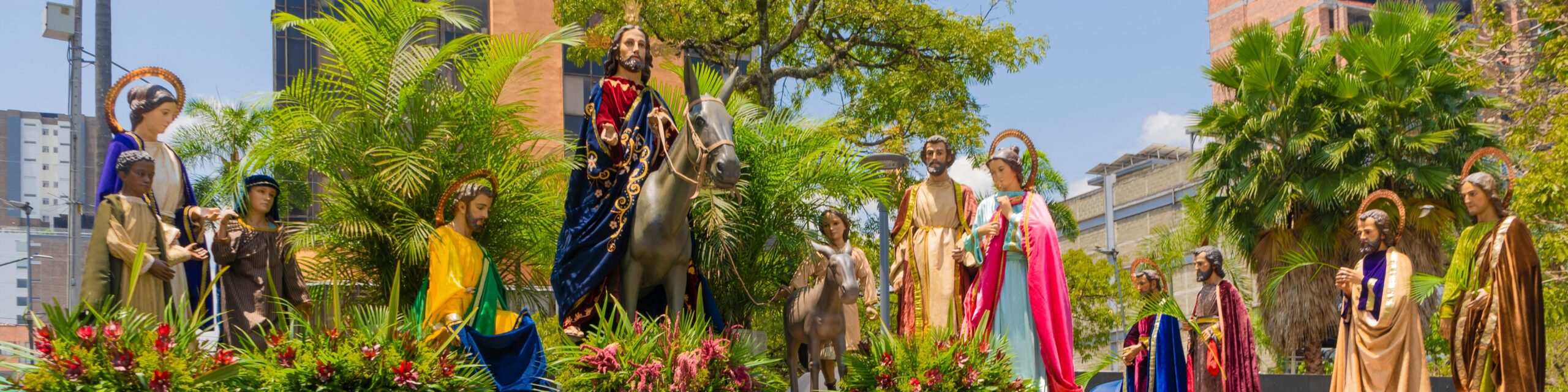 Die Evangelien erzählen, dass Jesus mit seinen Jüngern nach Jerusalem geht, um dort das jüdische Pessachfest zu feiern. Kurz vor der Stadt steigt er auf einen Esel und reitet damit in die Stadt ein. Die Menschen sehen ihn und jubeln ihm zu. Der Evangelist Matthäus erzählt: „Viele Menschen breiteten ihre Kleider auf der Straße aus, andere schnitten Zweige von den Bäumen und streuten sie auf den Weg.“ (Mt 21,8). Und diese Zweige waren die Palmzweige, die dem Palmsonntag seinen Namen gaben.