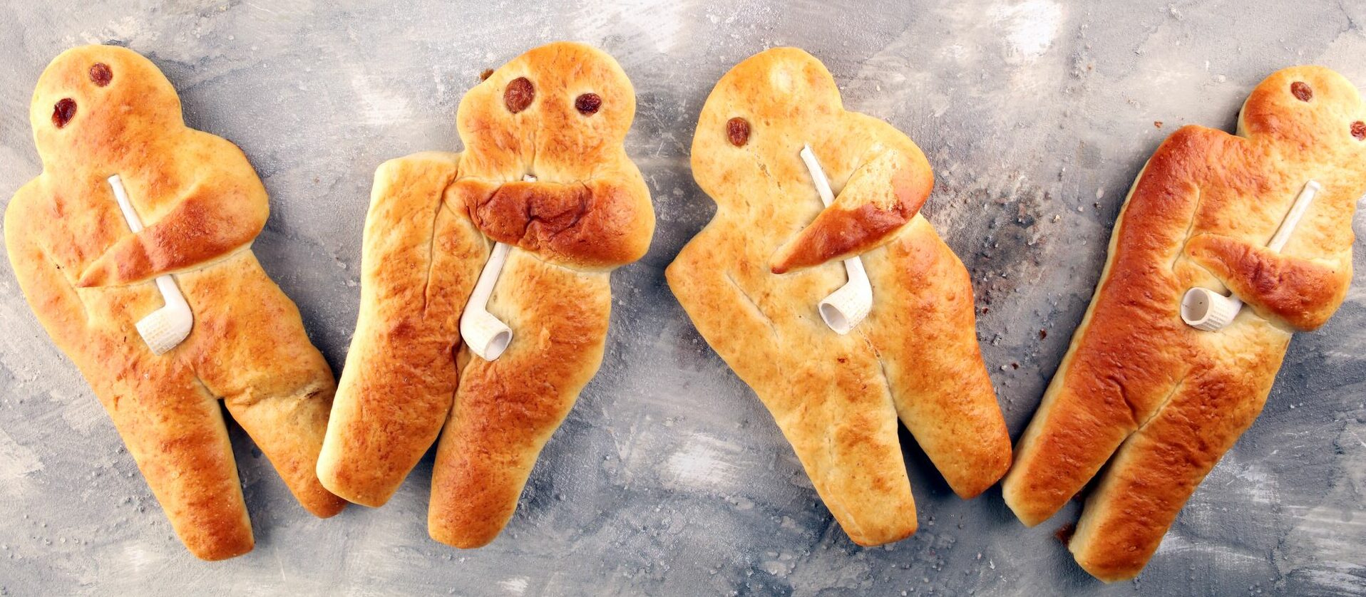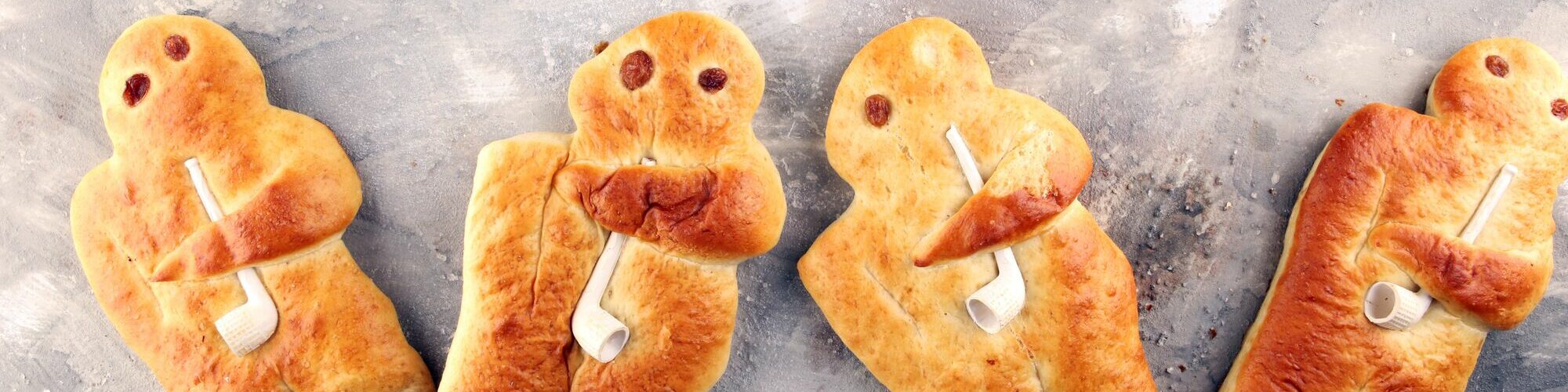 Den Backofen auf 180 Grad (Umluft: 160 Grad) vorheizen. Die Stutenkerle auf ein mit Backpapier belegtes Blech legen. Das Ei mit 1 Esslöffel Milch verquirlen und die Stutenkerle damit bestreichen. Die Rosinen als Augen und Mund fest in den Teig drücken. Anschließend ca. 20 Min. backen.
