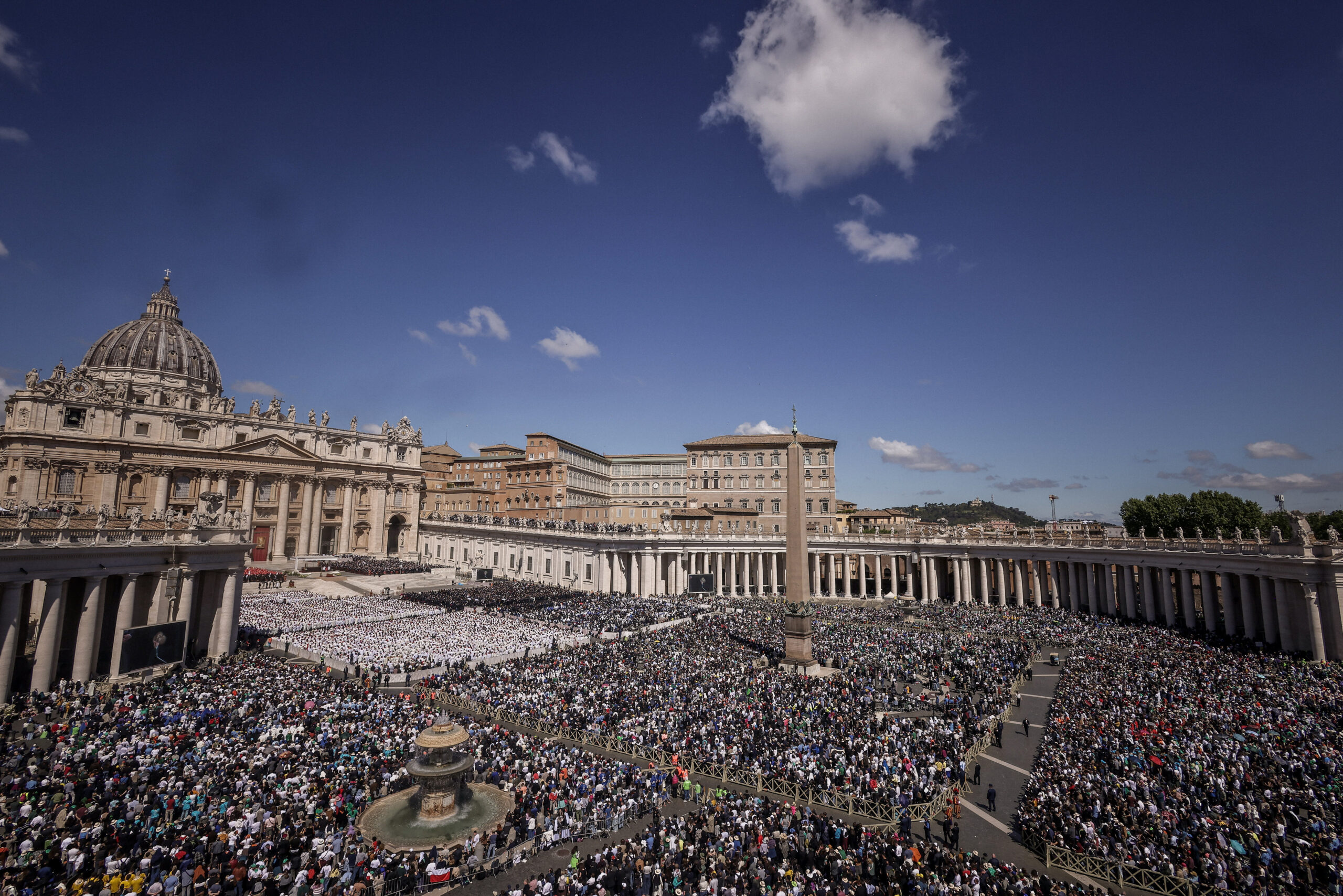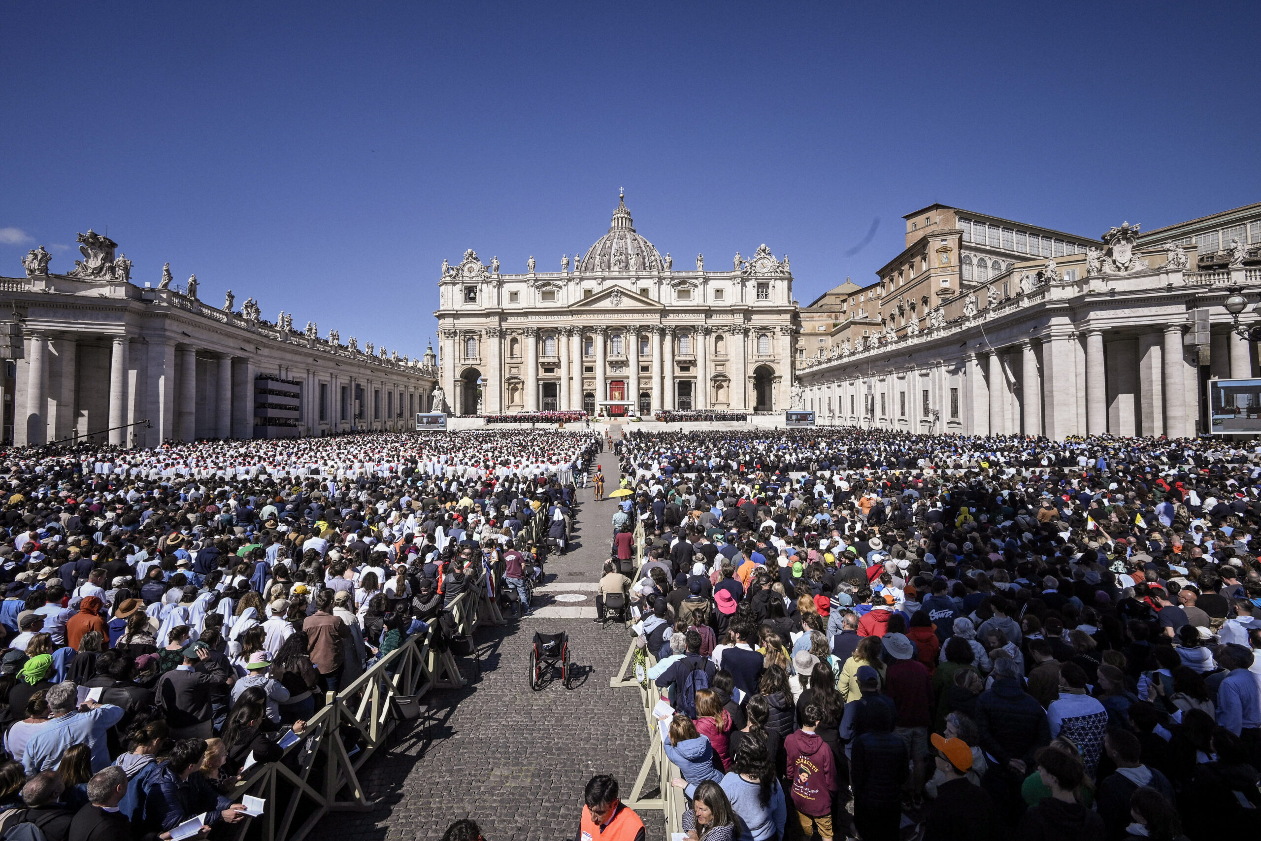 Menschenmenge beim Requiem für Papst Franziskus am 26. April 2025 auf dem Petersplatz im Vatikan.
